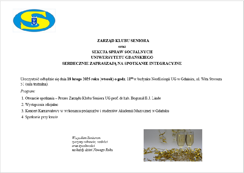 Uroczystość odbędzie się dnia 18 lutego 2025 roku (wtorek) o godz. 1100 w budynku Neofilologii UG w Gdańsku, ul. Wita Stwosza 51 (sala teatralna).