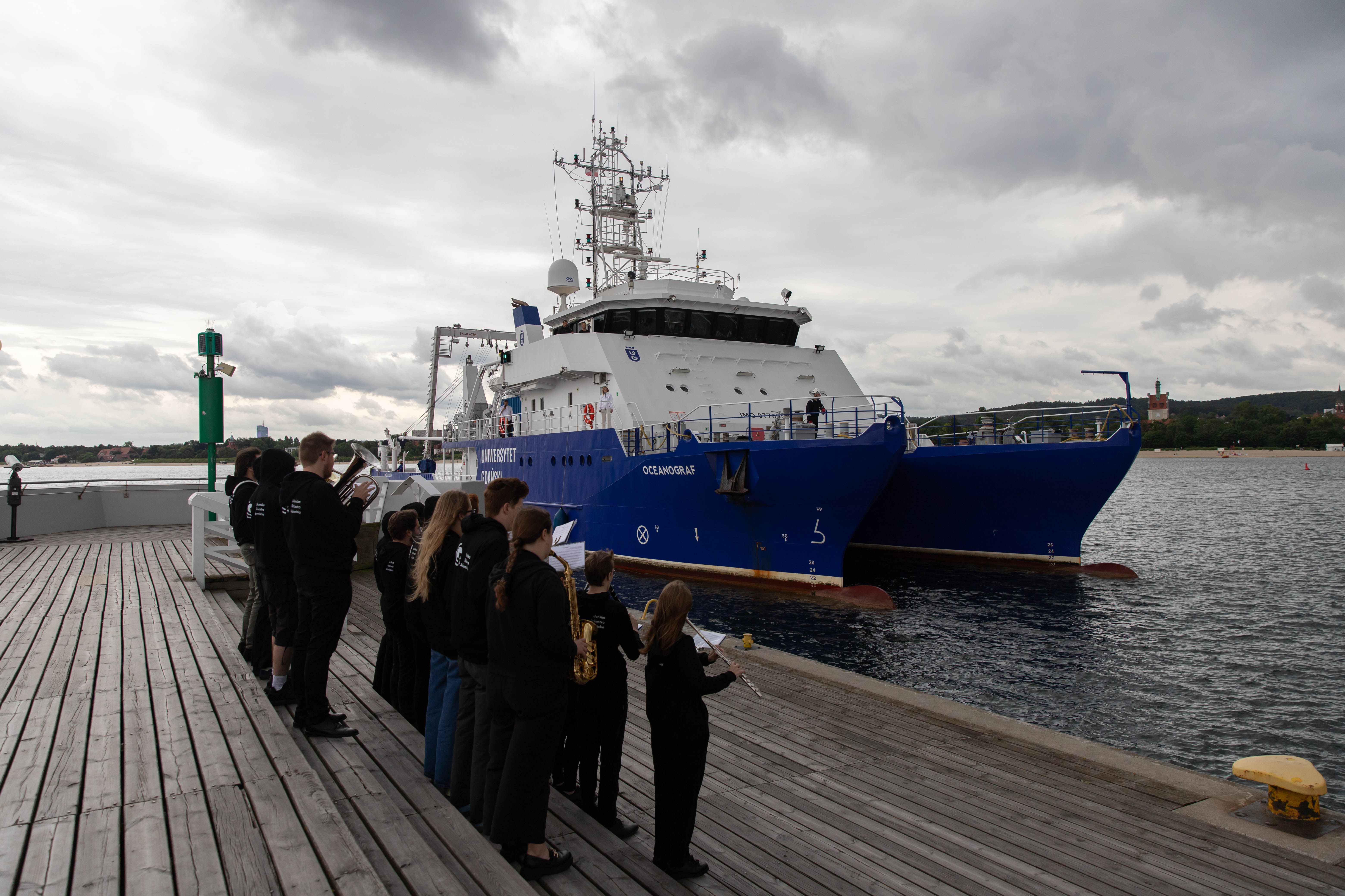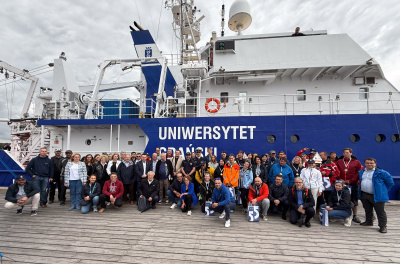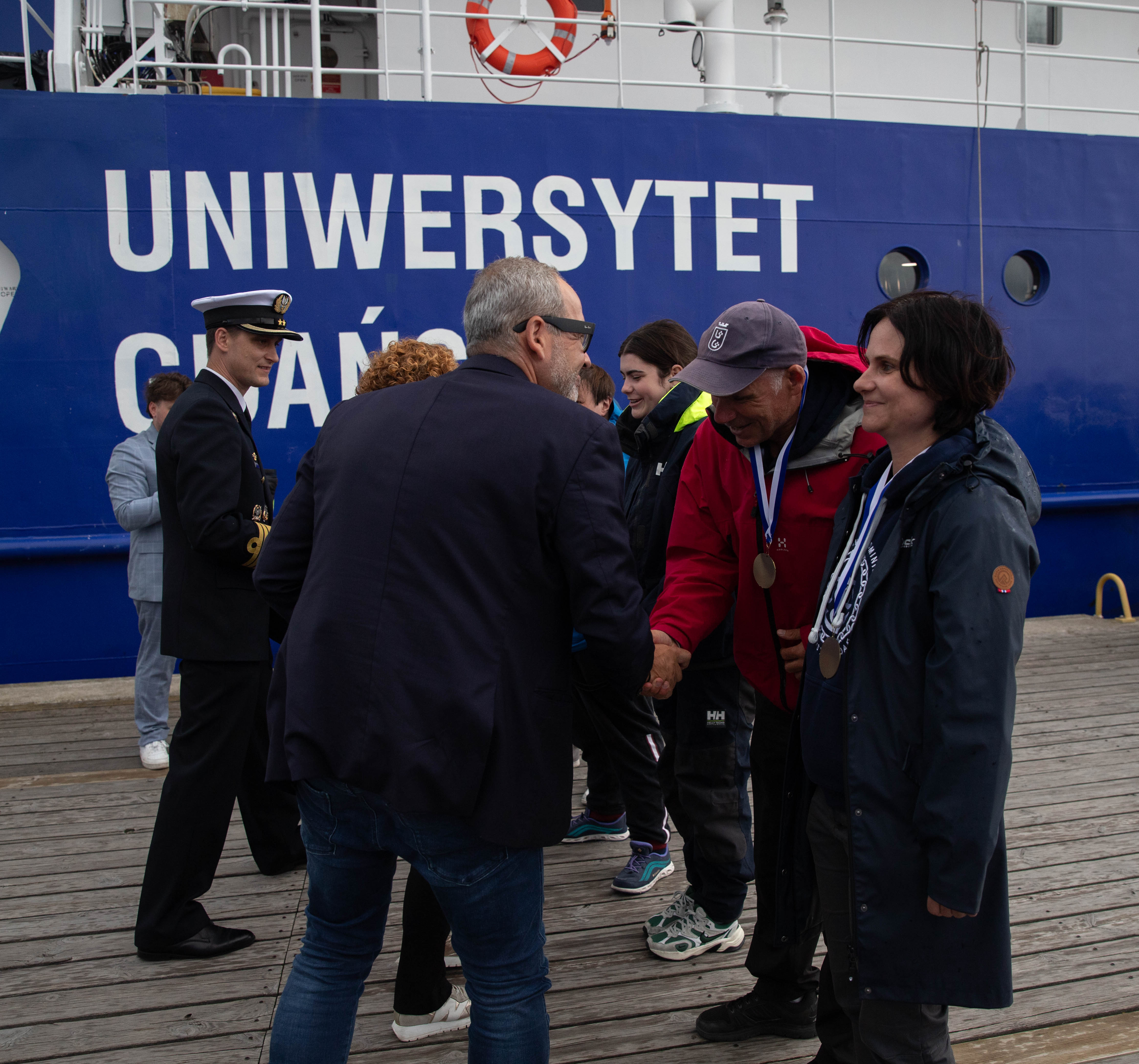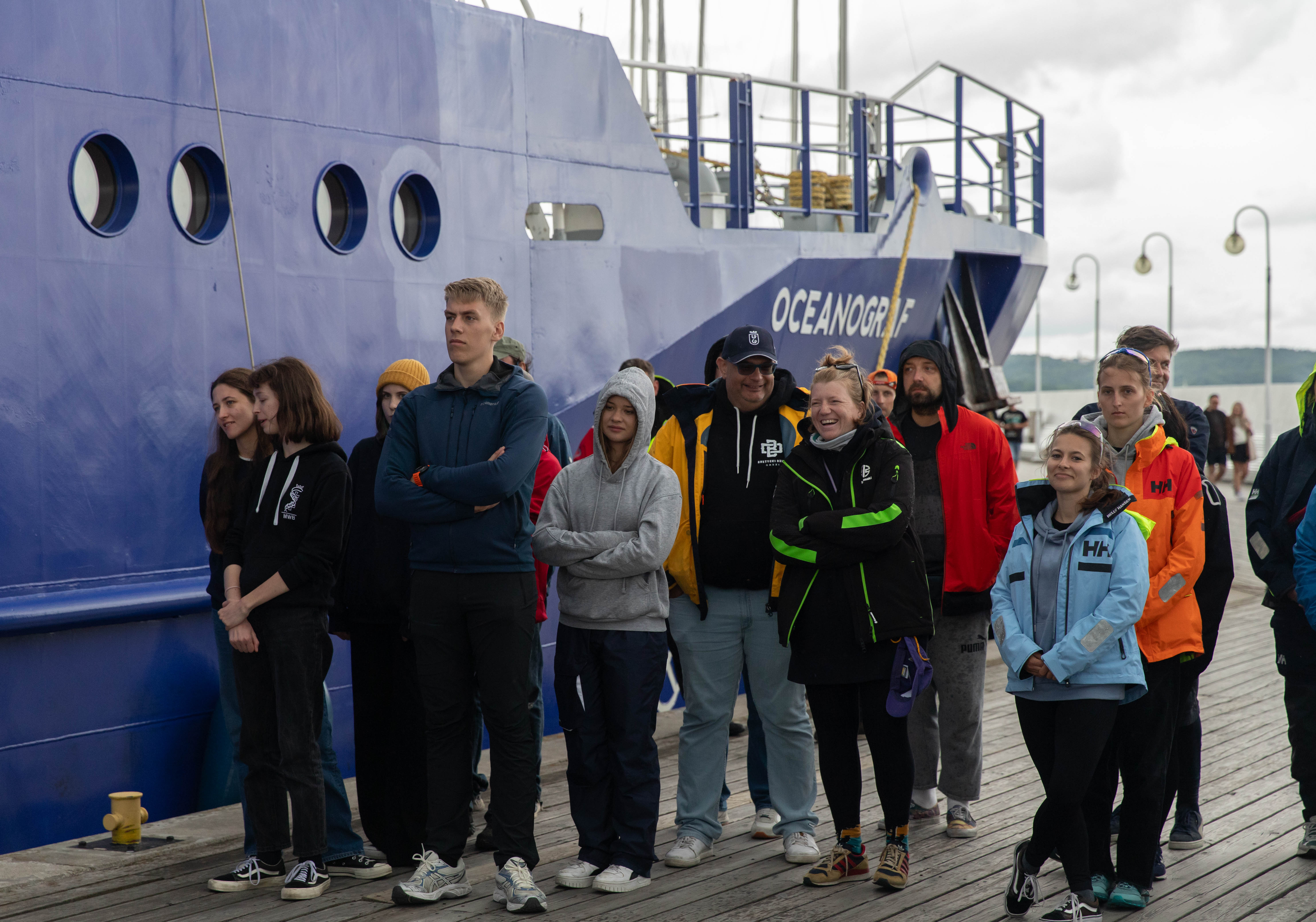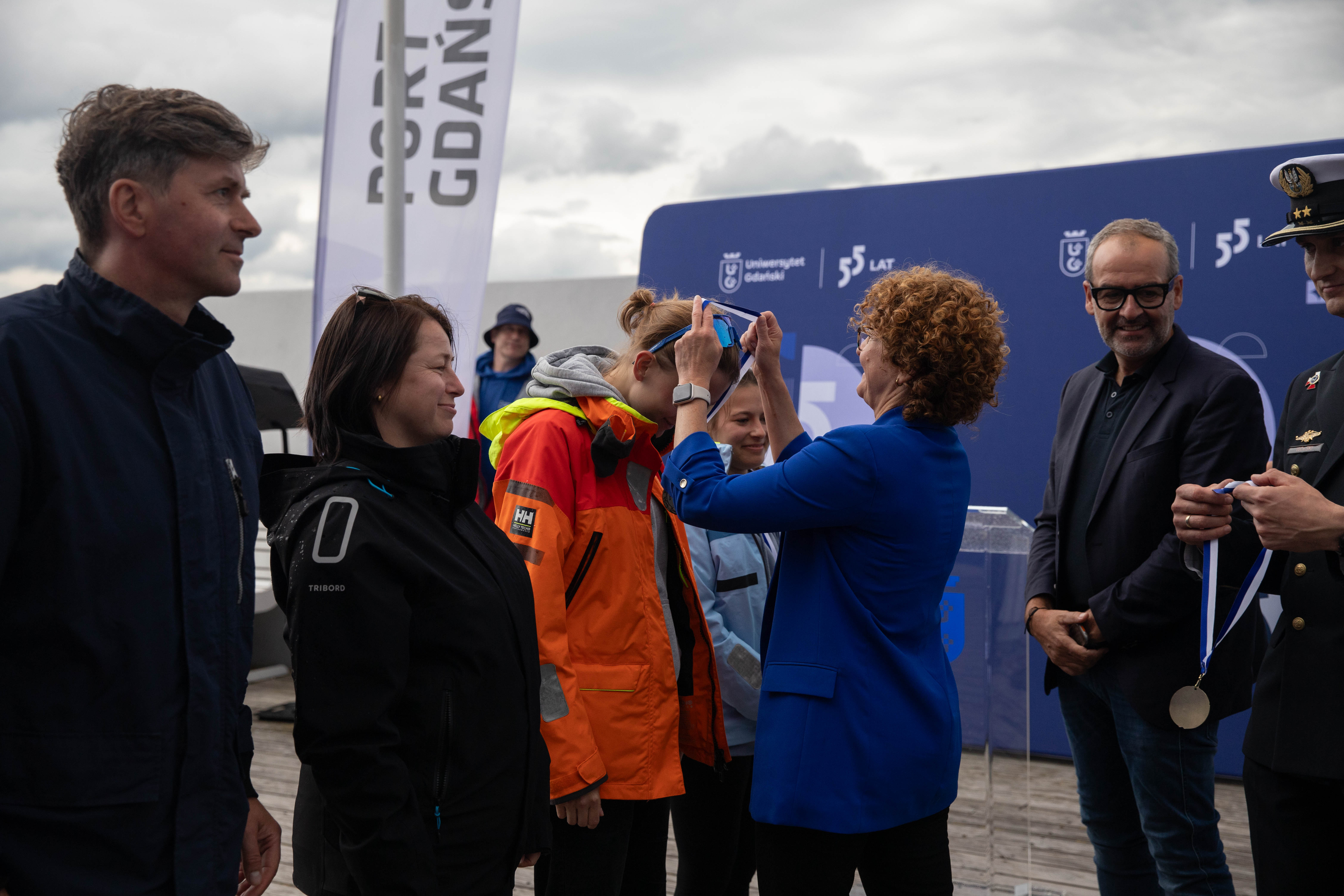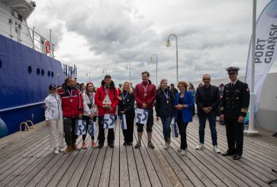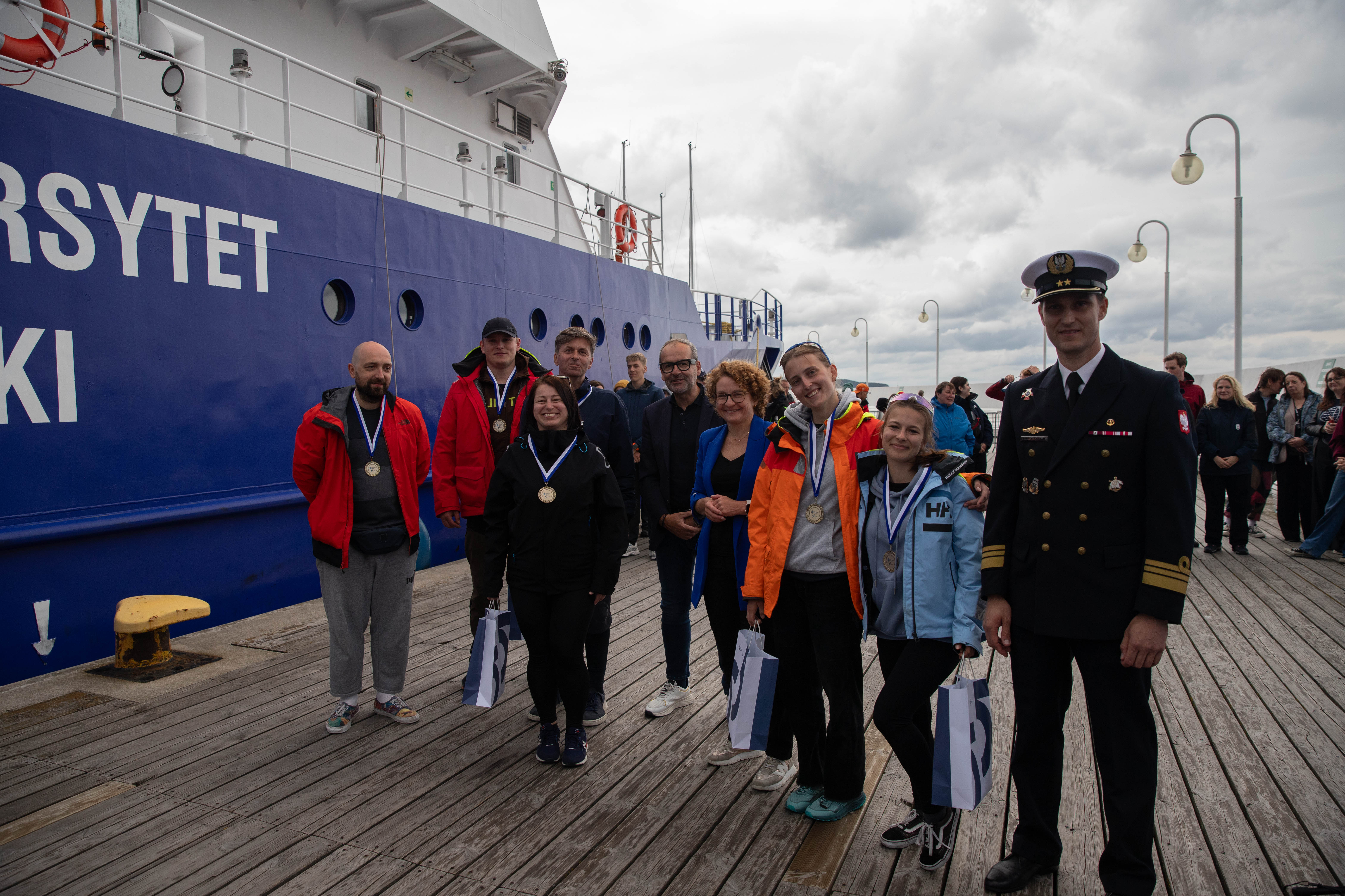 All participants of the regatta, together with the skippers from the Navy Sailing Training Centre, received commemorative medals and gifts. Then, the winning crews were presented with statuettes modelled on the OSŻ MW logo: a cup for the best time in the fifth race, funded by the OSŻ Commander, and the Cup of the Rector of the University of Gdańsk, the Mayor of Sopot and the Commander of the 3rd Fleet of the Navy for the best result in the general classification. The ceremony was concluded with a group photo in front of the r/v Oceanograf, a research vessel of the University of Gdańsk.