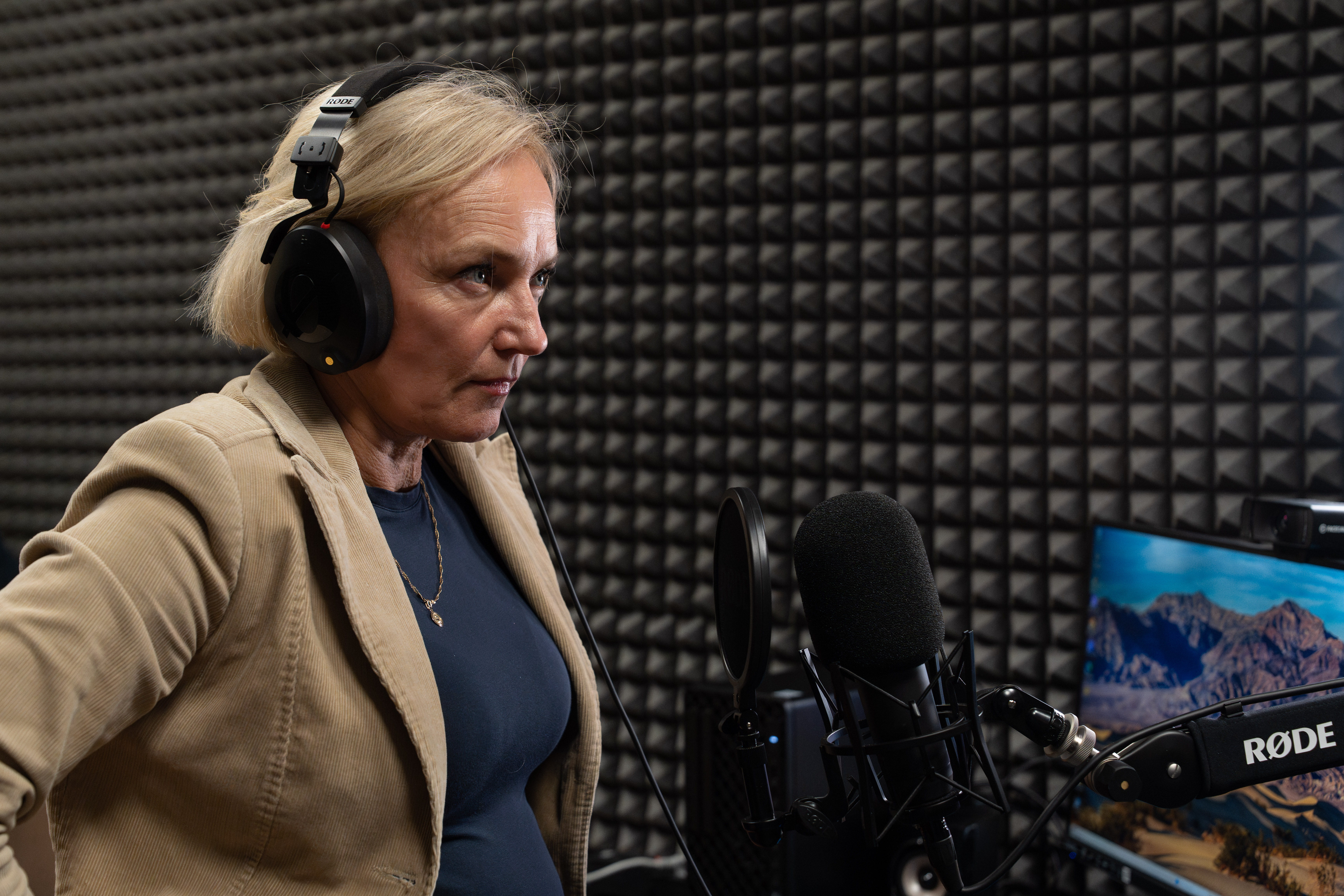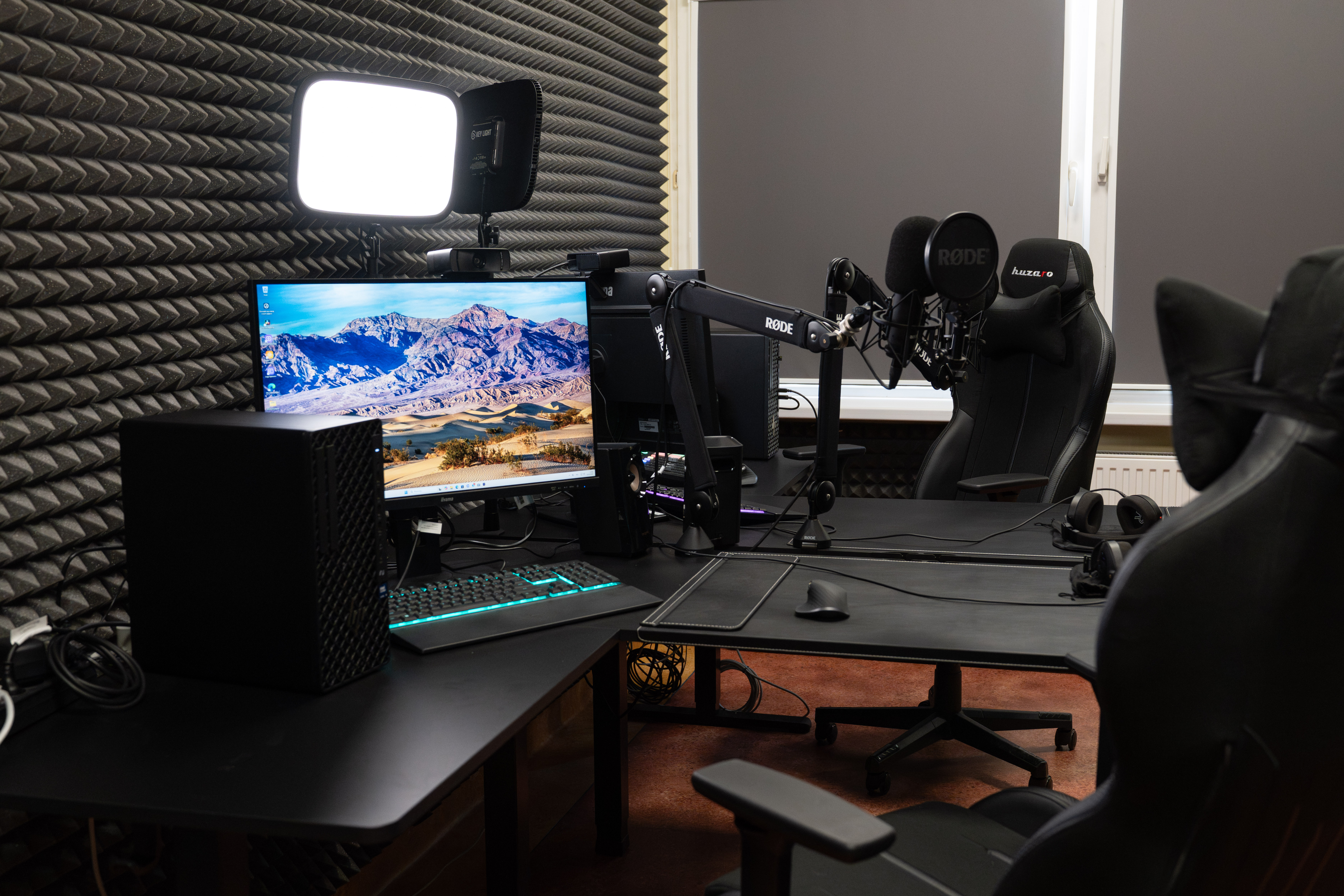 W skład studia wchodzą m.in. profesjonalne mikrofony pojemnościowe Rode NT1 5th Gen wraz z ramionami studyjnymi i popfiltrami, interfejs audio RØDECaster Pro II oraz słuchawki studyjne Rode NTH-100, zapewniające wysoką jakość rejestracji i odsłuchu dźwięku.