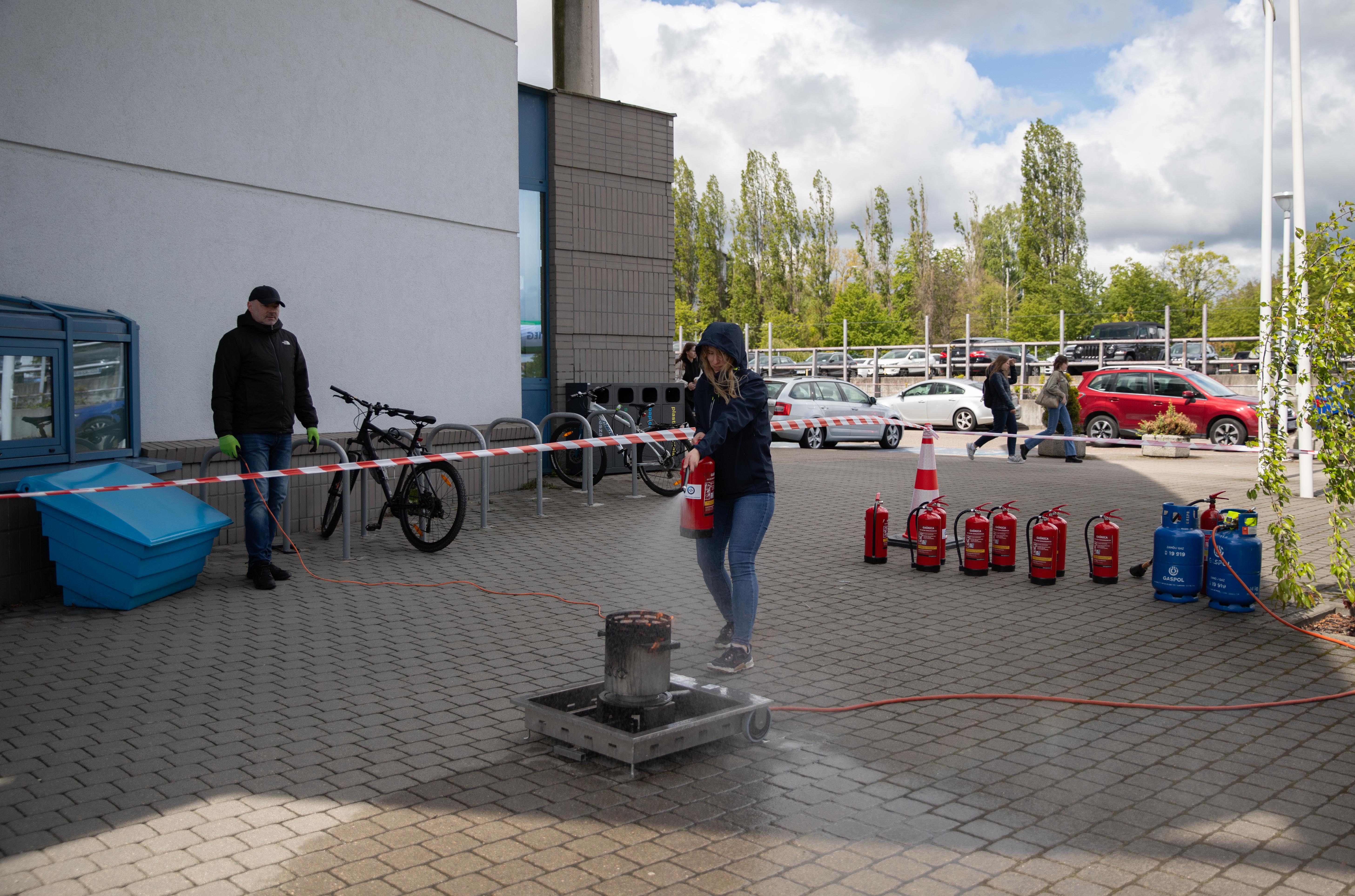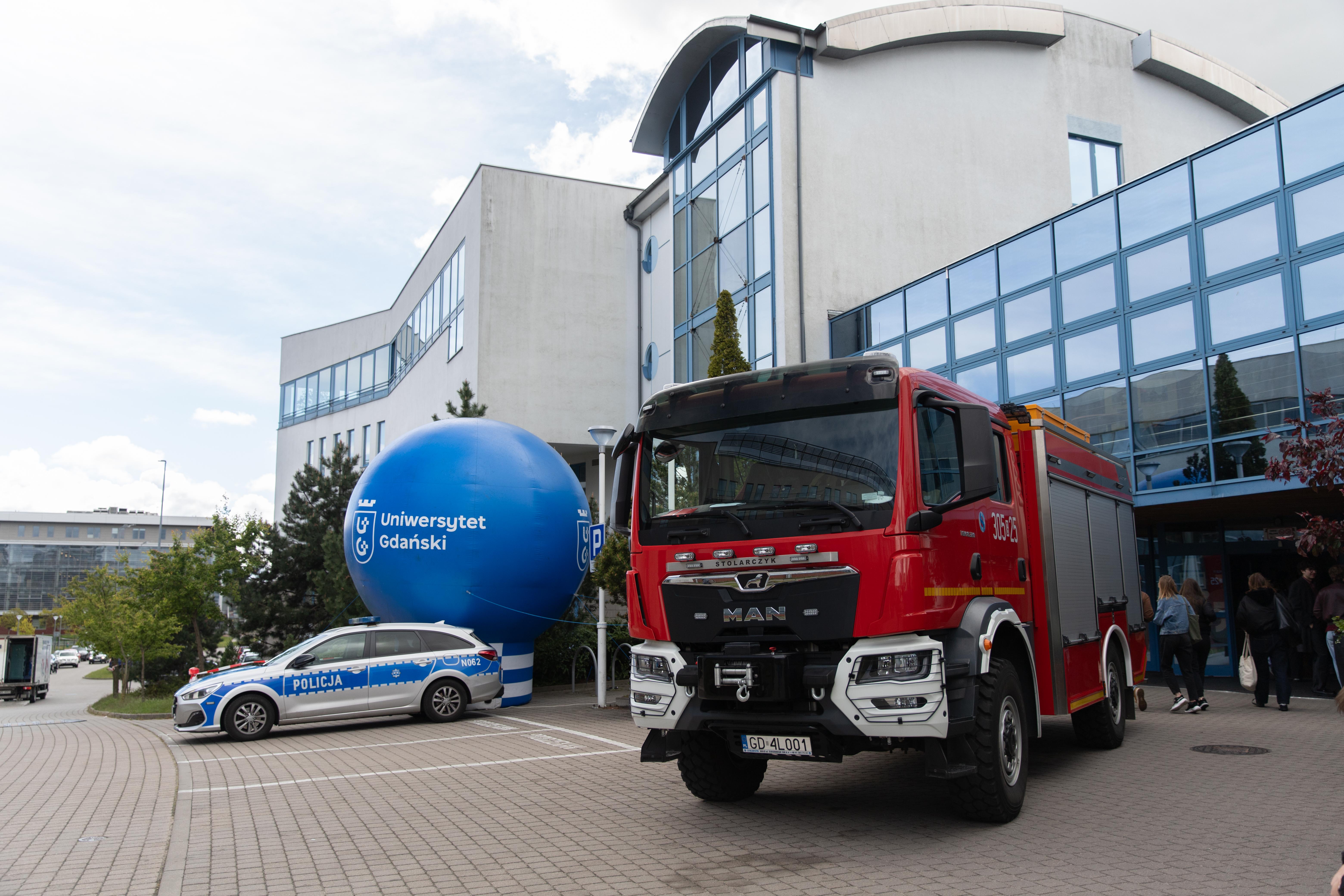 W czwartek rano przed budynkiem WPiA stanął wóz strażacki. Na szczęście nie był on wezwany do pożaru, lecz stanowił jedną z pierwszych atrakcji, jakie napotykali uczestnicy V Dnia Bezpieczeństwa Pracy i Ochrony Zdrowia na UG. Tuż obok, z zachowaniem zasad bezpieczeństwa, znajdowało się stanowisko z trenażerem gaśniczym, na którym można było praktycznie przećwiczyć gaszenie ognia w utrudnionych warunkach wietrznej pogody. Niestety wiatr przeszkodził w korzystaniu z innej atrakcji - komory dymowej. Kilka osób zdążyło się jednak przekonać, jak bardzo dym w pomieszczeniu może utrudniać pracę strażakom, pomimo używania masek z filtrami.