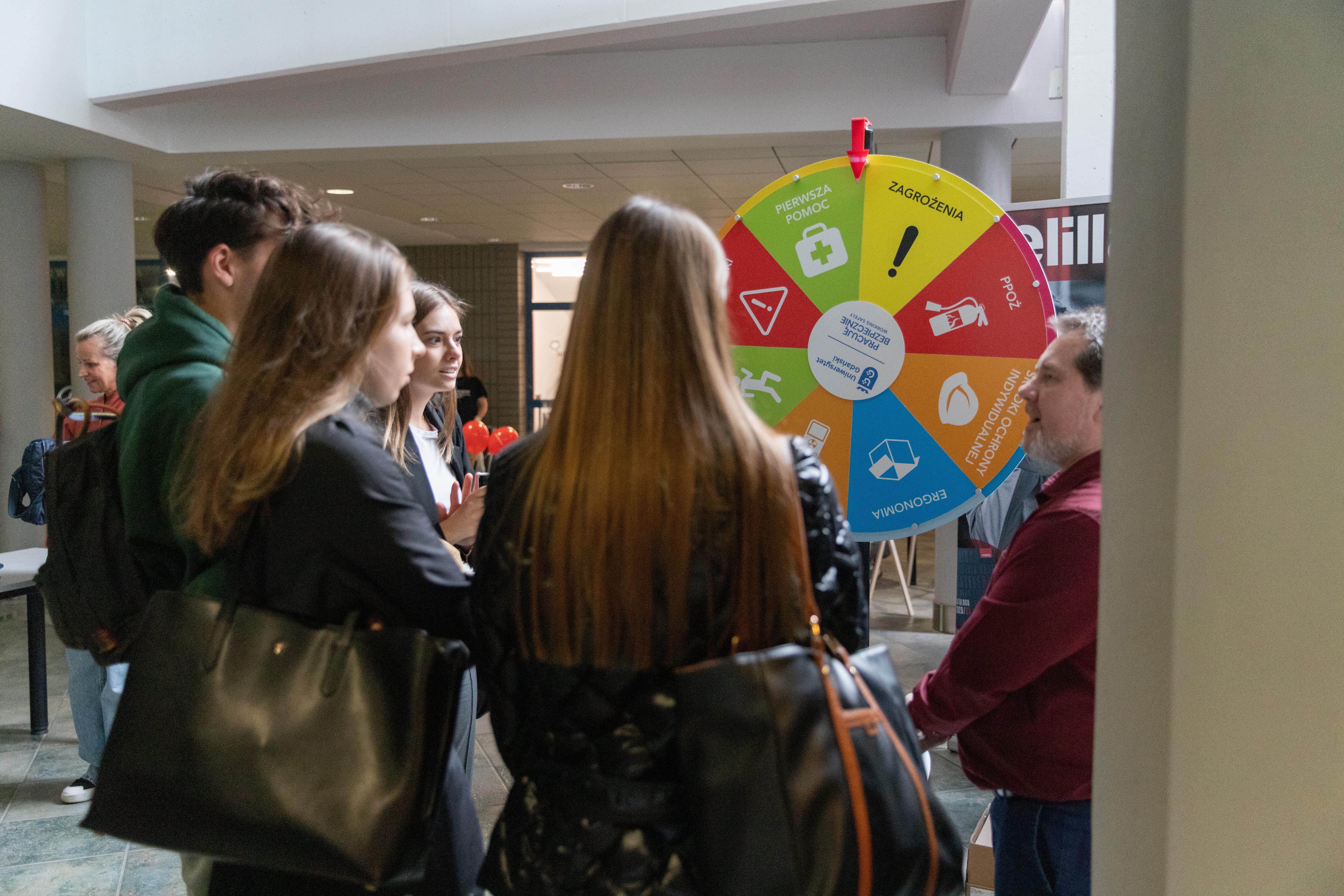 Z pozostałych atrakcji można było skorzystać pod dachem. W holu WPiA liczne stoiska zaprzyjaźnionych jednostek, instytucji i organizacji pozwalały uczestnikom zaznajomić się z rozmaitymi aspektami dbania o zdrowie i bezpieczeństwo zarówno w miejscu pracy, jak i poza nim. Odwiedzający mogli na przykład obejrzeć z bliska dron przystosowany do wykonywania operacji powietrznych w pomieszczeniach zamkniętych (takich jak zbiorniki), poznać skład własnego ciała za pomocą specjalnego analizatora, zmierzyć czas reakcji za pomocą refleksomierza lub przetestować działanie egzoszkieletu pasywnego, służącego do wspomagania układu mięśniowo-szkieletowego.