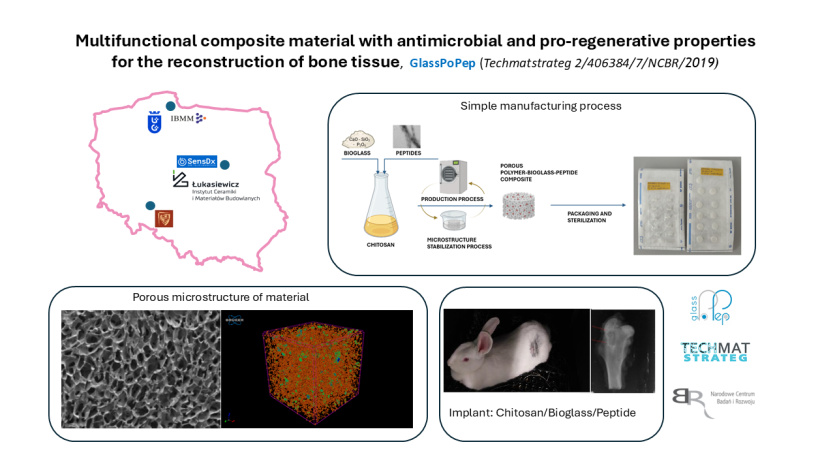 Nowo opracowane kompozytowe materiały implementacyjne - biomateriały mogą znaleźć zastosowanie w ortopedii, chirurgii szczękowo-twarzowej, neurochirurgii, a także w operacjach wykonywanych po urazach kości. Zostały opracowane z wykorzystaniem najnowszych osiągnięć zaawansowanej inżynierii materiałowej oraz chemii biomedycznej. Ich unikatowy skład i formuła pozwalają wspierać wzrost kości oraz regenerację uszkodzonych tkanek. W skład materiałów wchodzą: chitozan - naturalny polimer o wysokiej biokompatybilności, bioaktywne szkło i peptydy.