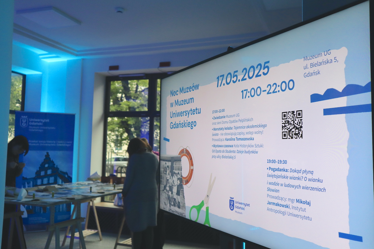 Muzeum Uniwersytetu Gdańskiego po raz kolejny wzięło udział w Europejskiej Nocy Muzeów. Tegoroczna edycja była wyjątkowa - po raz pierwszy Muzeum zaprezentowało uczestnikom, otwartą w październiku 2024 r. wystawę stałą. W programie znalazły się m.in. oprowadzania kuratorskie, warsztaty twórcze, wykład tematyczny oraz wystawa czasowa przygotowana przez studentki i studentów Historii Sztuki Uniwersytetu Gdańskiego.