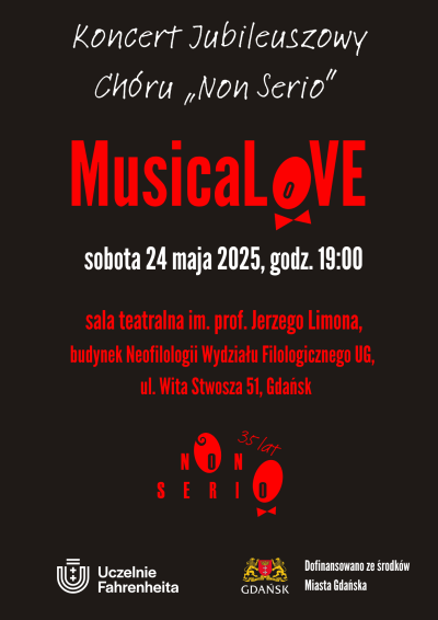 Koncert „MusicaLOVE” to święto 35-lecia działalności chóru, który przez lata funkcjonował jako Chór Wydziału Zarządzania Uniwersytetu Gdańskiego, a właśnie rozpoczyna nowy rozdział jako Chór Absolwentów Uczelni Fahrenheita. Wydarzenie zostało dofinansowane ze środków Miasta Gdańska. Wstęp wolny, dla uczestników dostępny będzie bezpłatny parking UG.