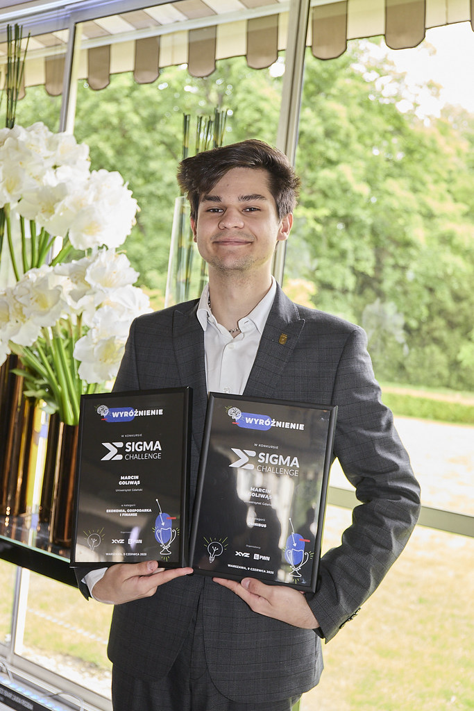 Pierwszy rok studiów i podwójny sukces w konkursie sprawdzającym wiedzę i szybkość myślenia. Pan Marcin Goliwąs, student I roku historii, zdobył II miejsce w dwóch kategoriach ogólnopolskiego konkursu XYZ Sigma Challenge 2025: Ekonomia, gospodarka, finanse oraz Omnibus, co czyni go jednym z najbardziej wszechstronnych uczestników. Uroczyste wręczenie nagród miało miejsce 10 czerwca w Warszawie.