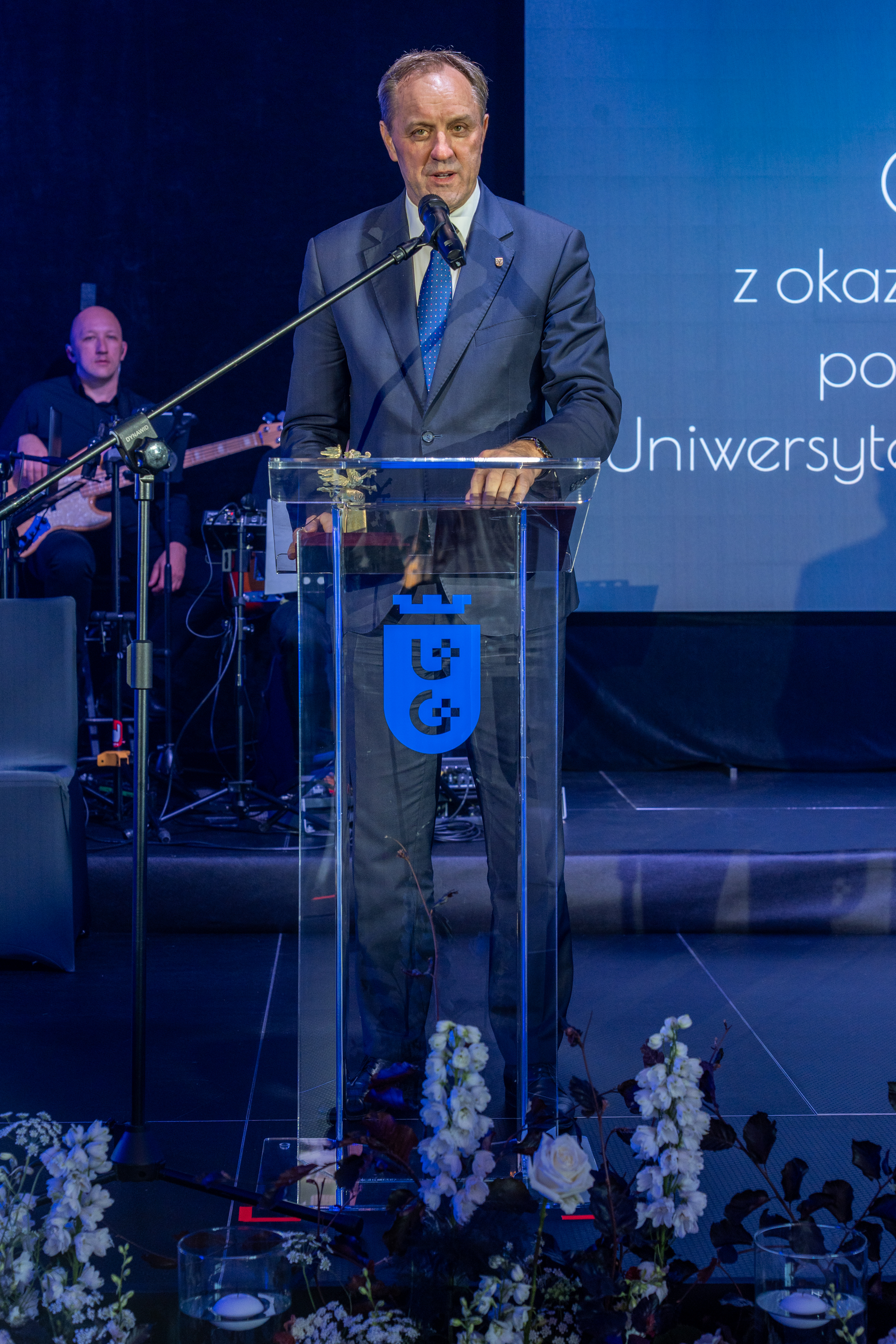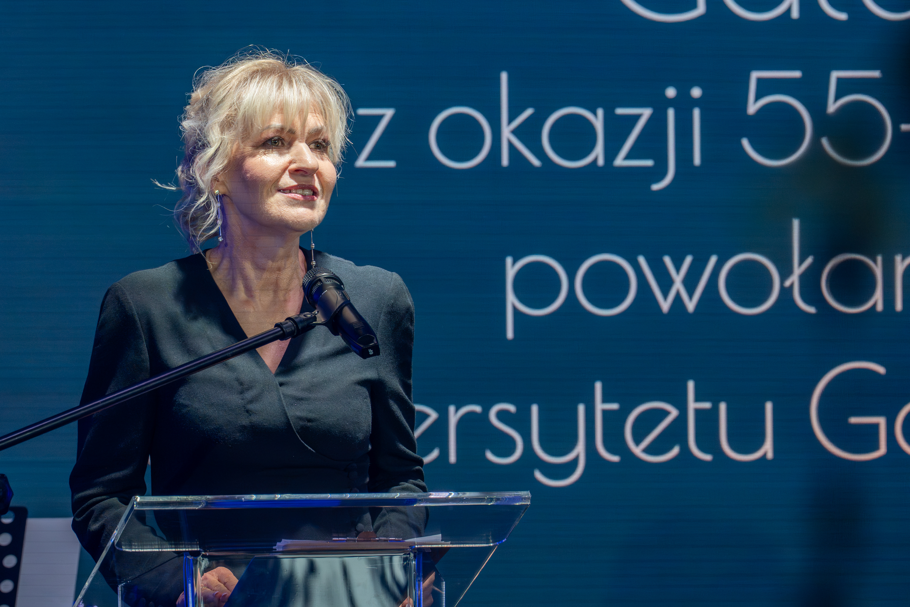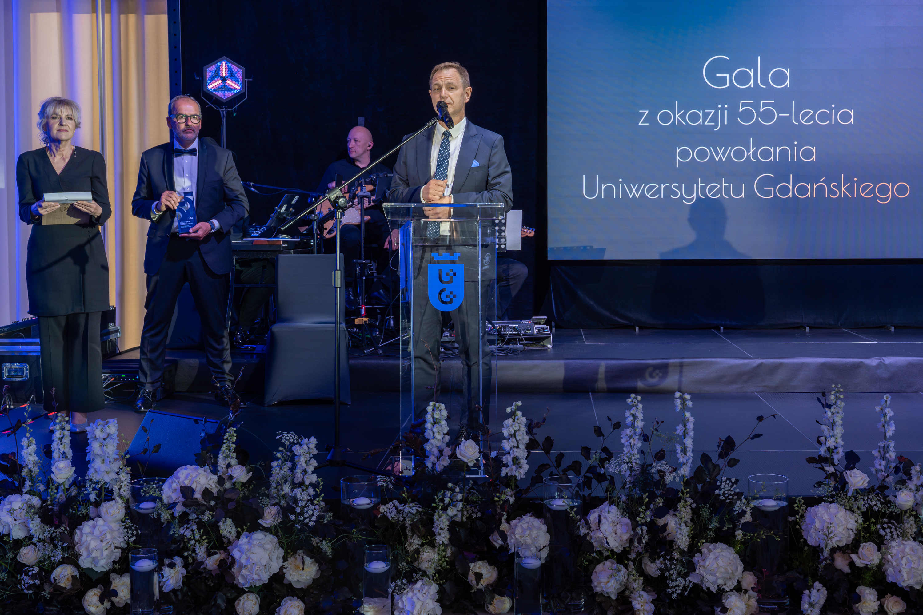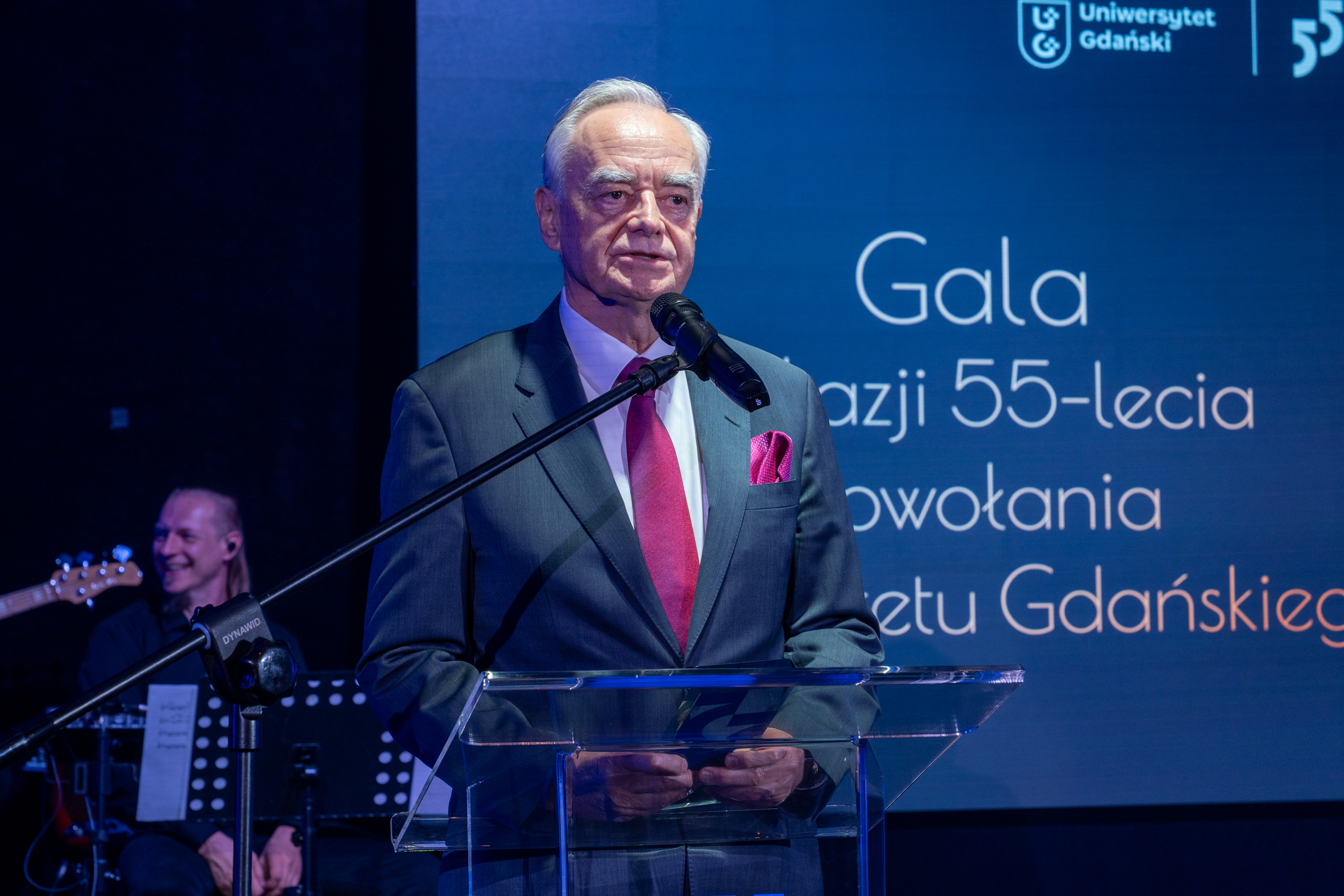 - Uniwersytet Gdański od początku silnie zaznaczał też swoje związki z morzem i naszym nadmorskim położeniem, zgodnie z łacińską maksymą In Mari Via Tua - w morzu twoja droga. W morzu, które jest najczystszą emanacją niezależności, otwartości i niczym nieskrępowanej wolności - powiedział Rektor prof. Piotr Stepnowski. - Drodzy goście, przyjaciele, jesteście dzisiaj z nami, ponieważ wspieracie nasze działania, tworzycie z nami wspólnotę wartości, którym chcemy być wierni. Uczelnia wczuwa się w puls Pomorza, budując relacje społeczne, gospodarcze i kulturowe regionu. Szanowni Państwo, dziękuję, że od 55 lat jesteście częścią naszej historii. Dziękuję za wspólne budowanie Uniwersytetu Gdańskiego i regionu Pomorskiego - i wierzę, że razem napiszemy kolejne piękne rozdziały tej opowieści.