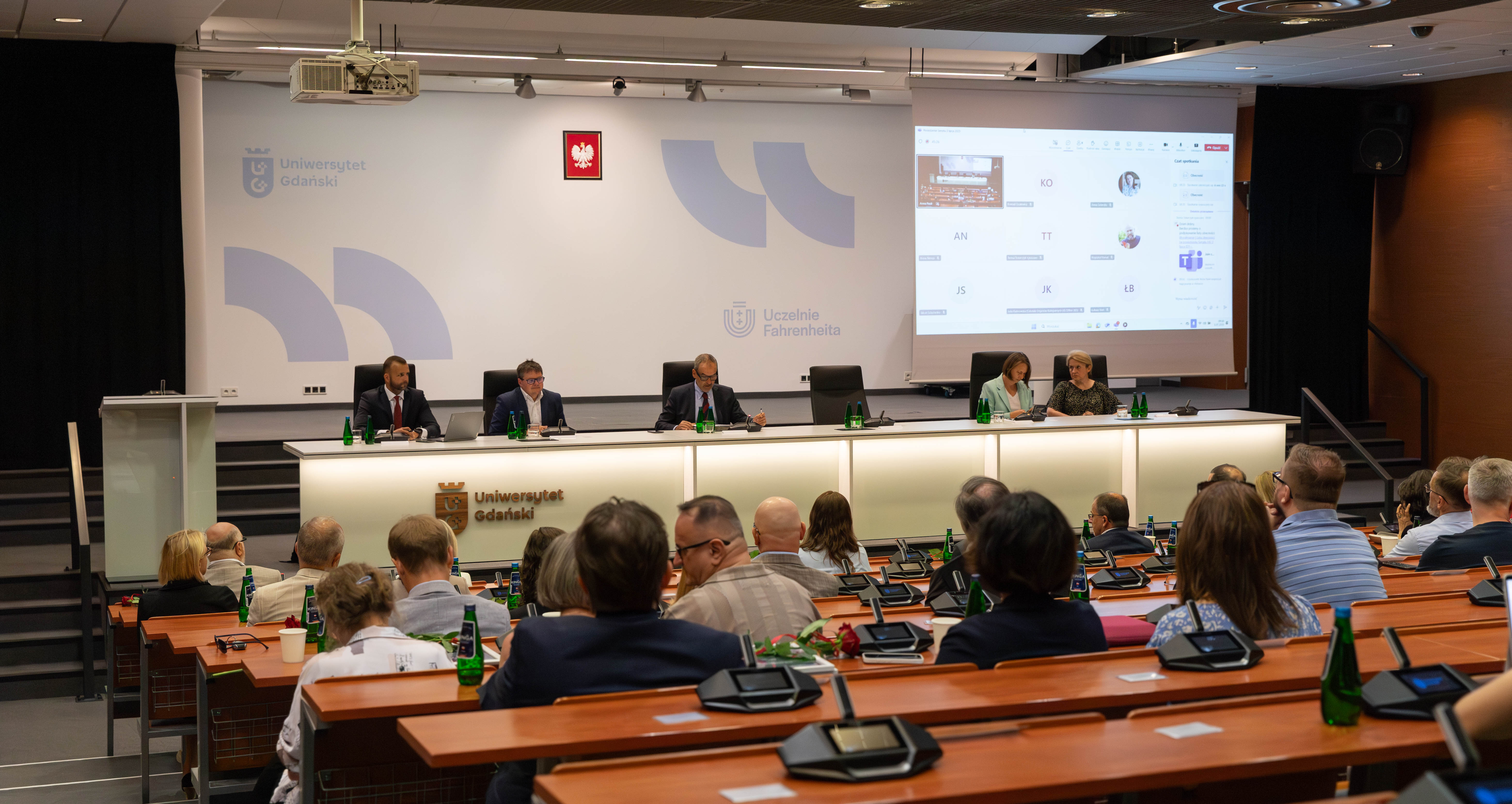 Ostatnie w roku akademickim 2024/2025 posiedzenie Senatu Uniwersytetu Gdańskiego, które odbyło się 3 lipca br., rozpoczął Rektor prof. dr hab. Piotr Stepnowski złożeniem gratulacji prof. dr. hab. Grzegorzowi Węgrzynowi, który został członkiem rzeczywistym Polskiej Akademii Nauk.