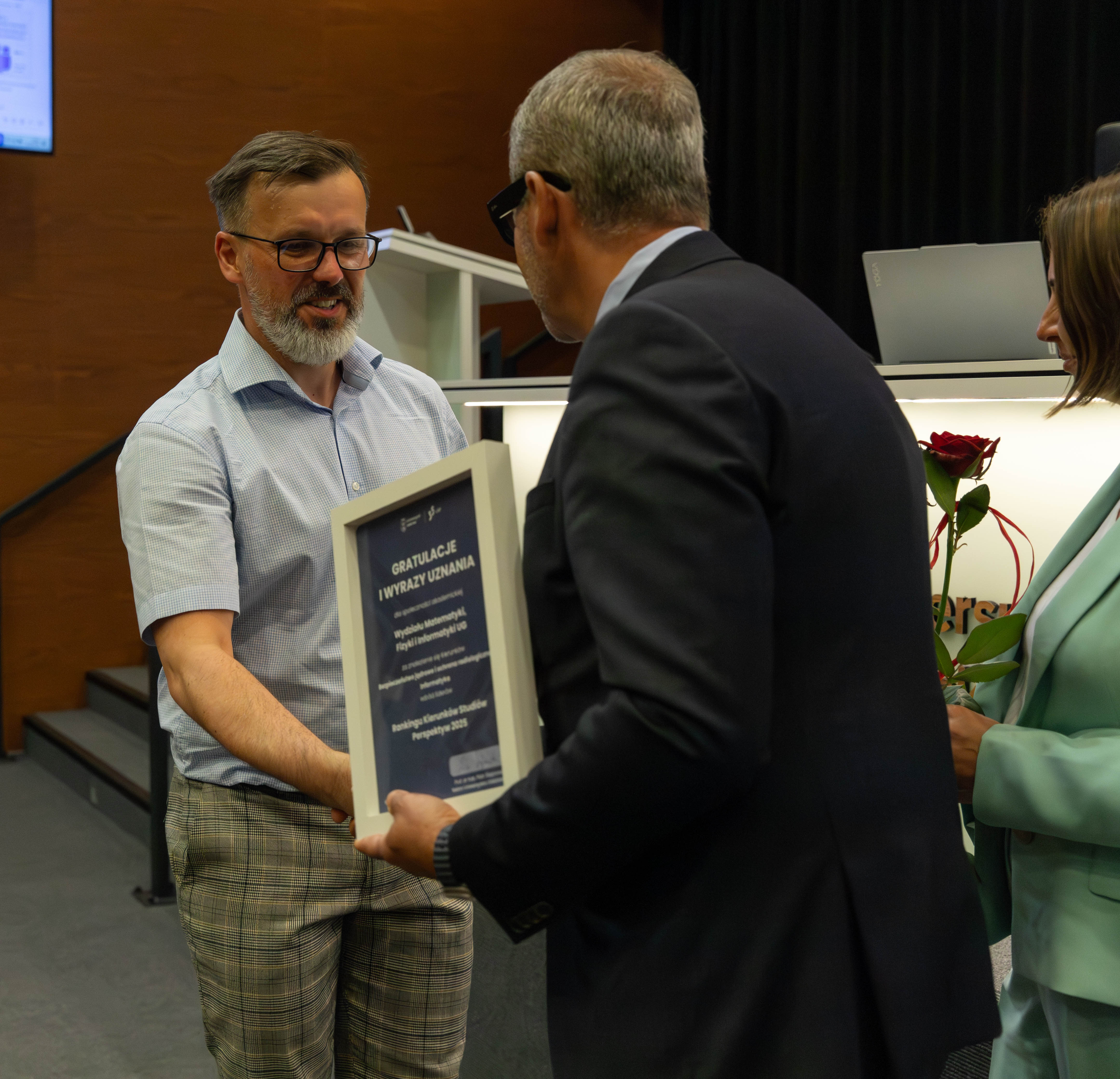 Następnie gratulacje i dyplomy dla społeczności akademickiej z rąk Rektora prof. Piotra Stepnowskiego i Prorektor ds. Kształcenia dr Ewy Szymczak, prof. UG odbierali dziekani i prodziekani wydziałów, których kierunki znalazły się na wysokich miejscach rankingu Perspektyw: Wydział Historyczny - kierunek Historia, Wydział Biologii - kierunek Biologia, Międzyuczelniany Wydział Biotechnologii UG i GUmed - Biotechnologia, Wydział Nauk Społecznych - dwa kierunki: Bezpieczeństwo narodowe i Politologia, Wydział Zarządzania - Informatyka i ekonometria, Wydział Filologiczny - Kulturoznawstwo, Wydział Oceanografii i Geografii - Geografia, Wydział Matematyki, Fizyki i Informatyki - Informatyka oraz Bezpieczeństwo jądrowe i ochrona radiologiczna, Wydział Chemii - Ochrona środowiska. Wydział Prawa i Administracji został wyróżniony za pozycje kierunków Administracja i Prawo w rankingu „Perspektyw” oraz za 4 miejsce w rankingu studiów prawniczych „Dziennika Gazety Prawnej”.