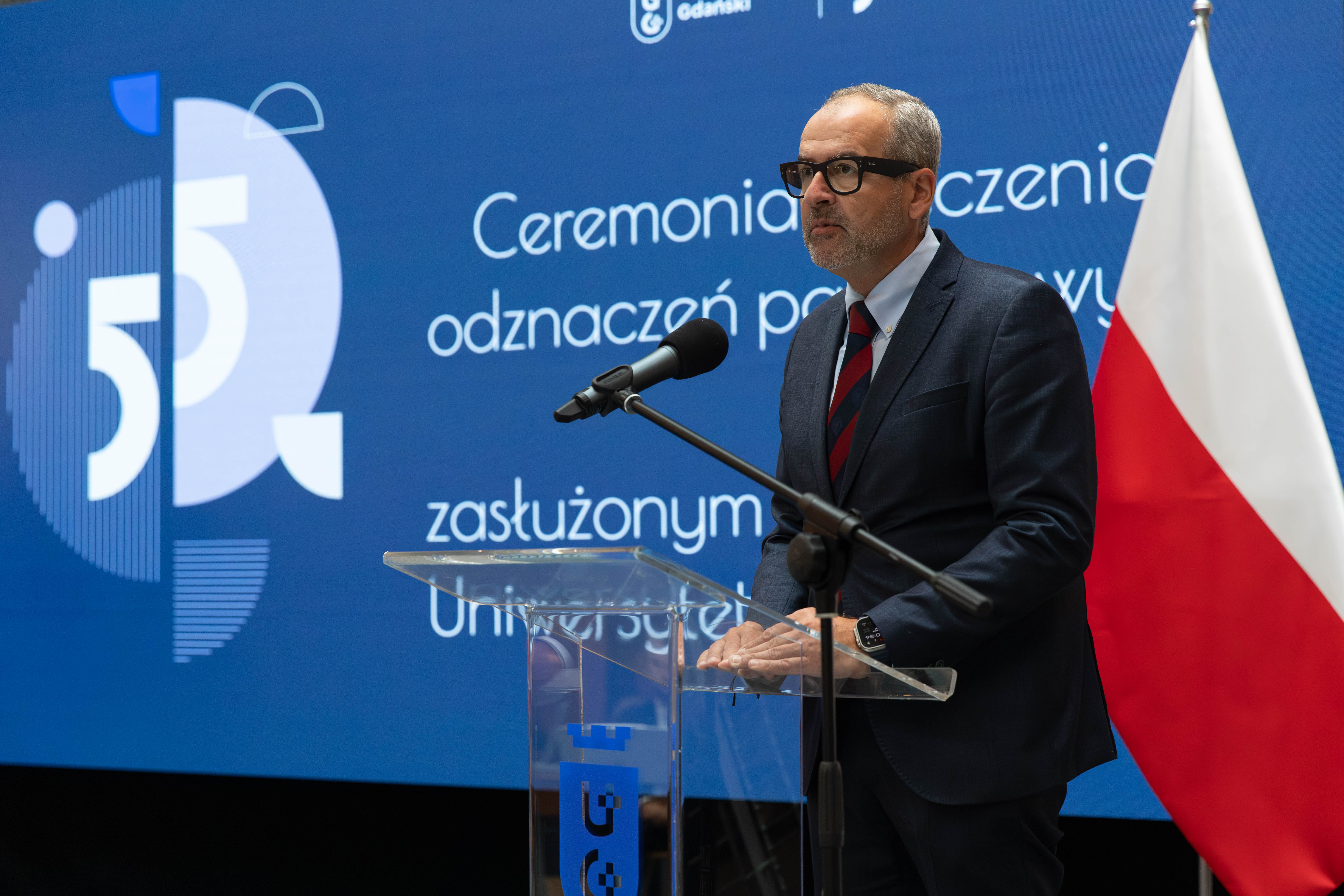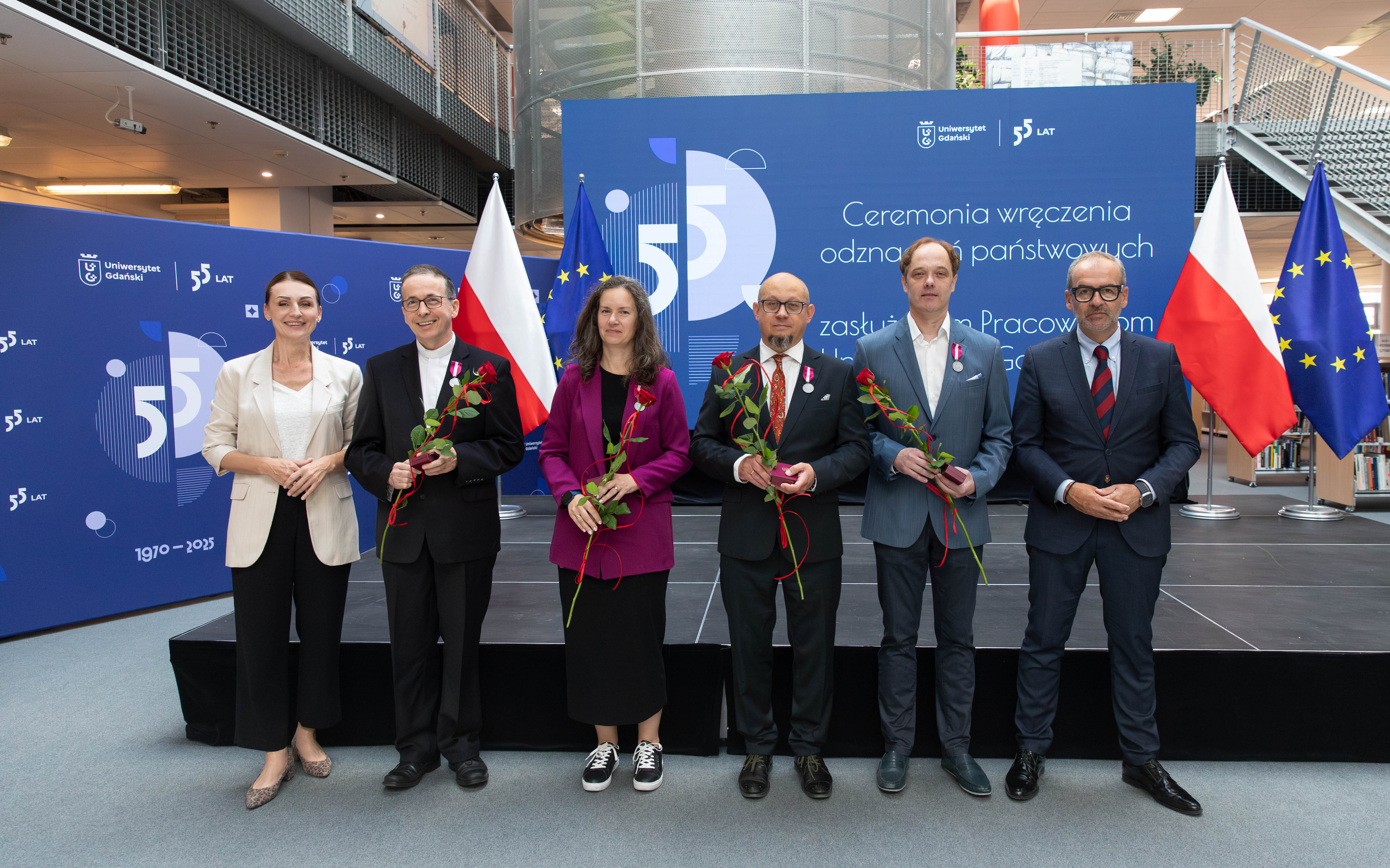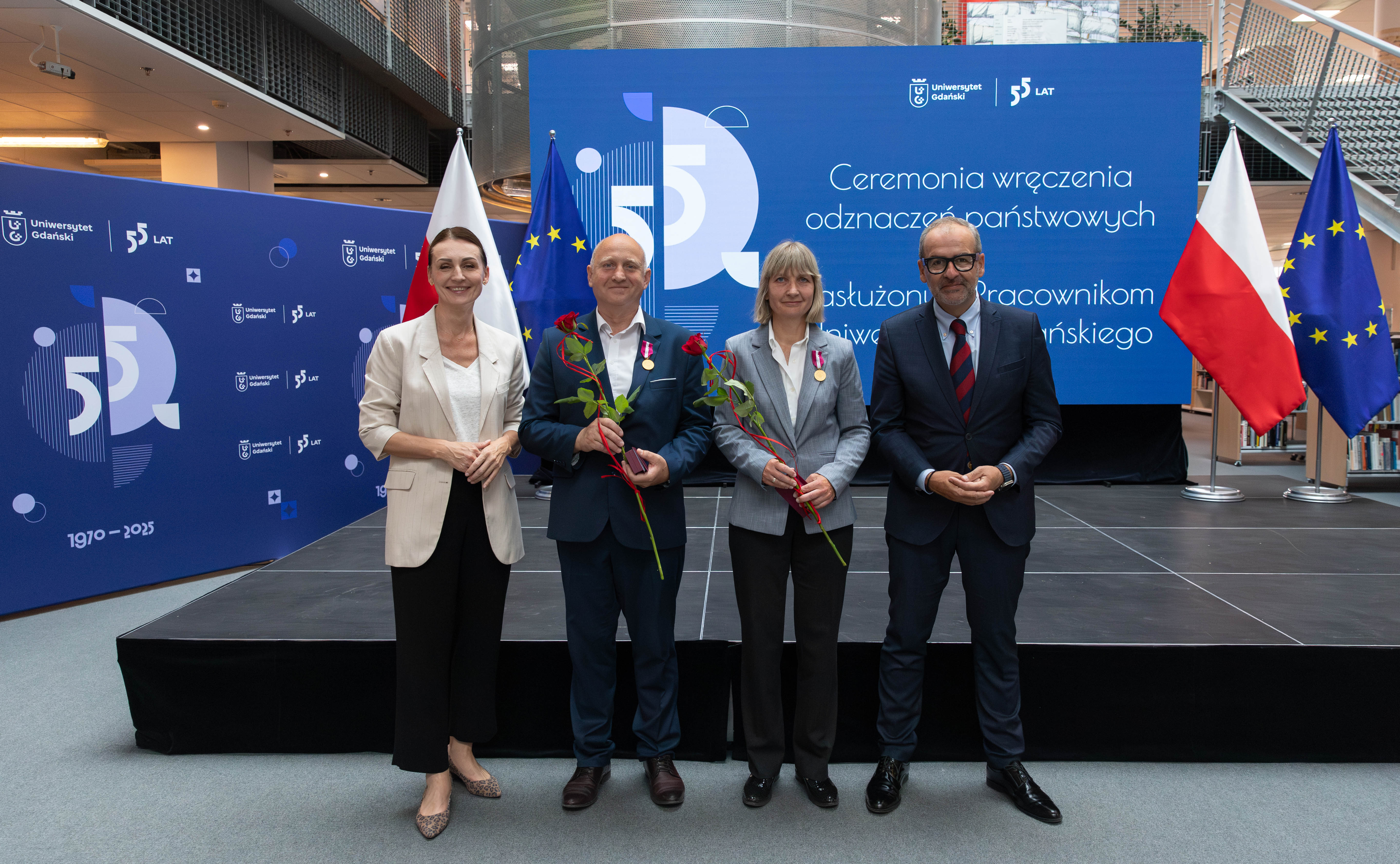 - Uhonorowanie naszych pracowników odznaczeniami państwowymi To przede wszystkim dowód na ta, że cała społeczność Uniwersytetu Gdańskiego pracuje na jego markę, prestiż i rozpoznawalność. To widać nie tylko w naszych znakomitych osiągnięciach naukowych, organizacyjnych i dydaktycznych, ale również w pozycji uniwersytetu w rankingach zarówno krajowych, jak i międzynarodowych - powiedział Rektor Uniwersytetu Gdańskiego, prof. Piotr Stepnowski. - Dzisiaj jesteśmy tu po to, aby uhonorować naszych najwybitniejszych, najbardziej zasłużonych pracowników. Te odznaczenia są dowodem na to, że związaliście swoje życie i pasję z waszą uczelnią. Za to chciałbym wam serdecznie podziękować, bo ten nierozerwalny związek między waszą pracą a uniwersytetem to jest właśnie to dobro, które tworzy jego pozycję zarówno w kraju, jak i za granicą. Serdecznie Państwu gratuluję!