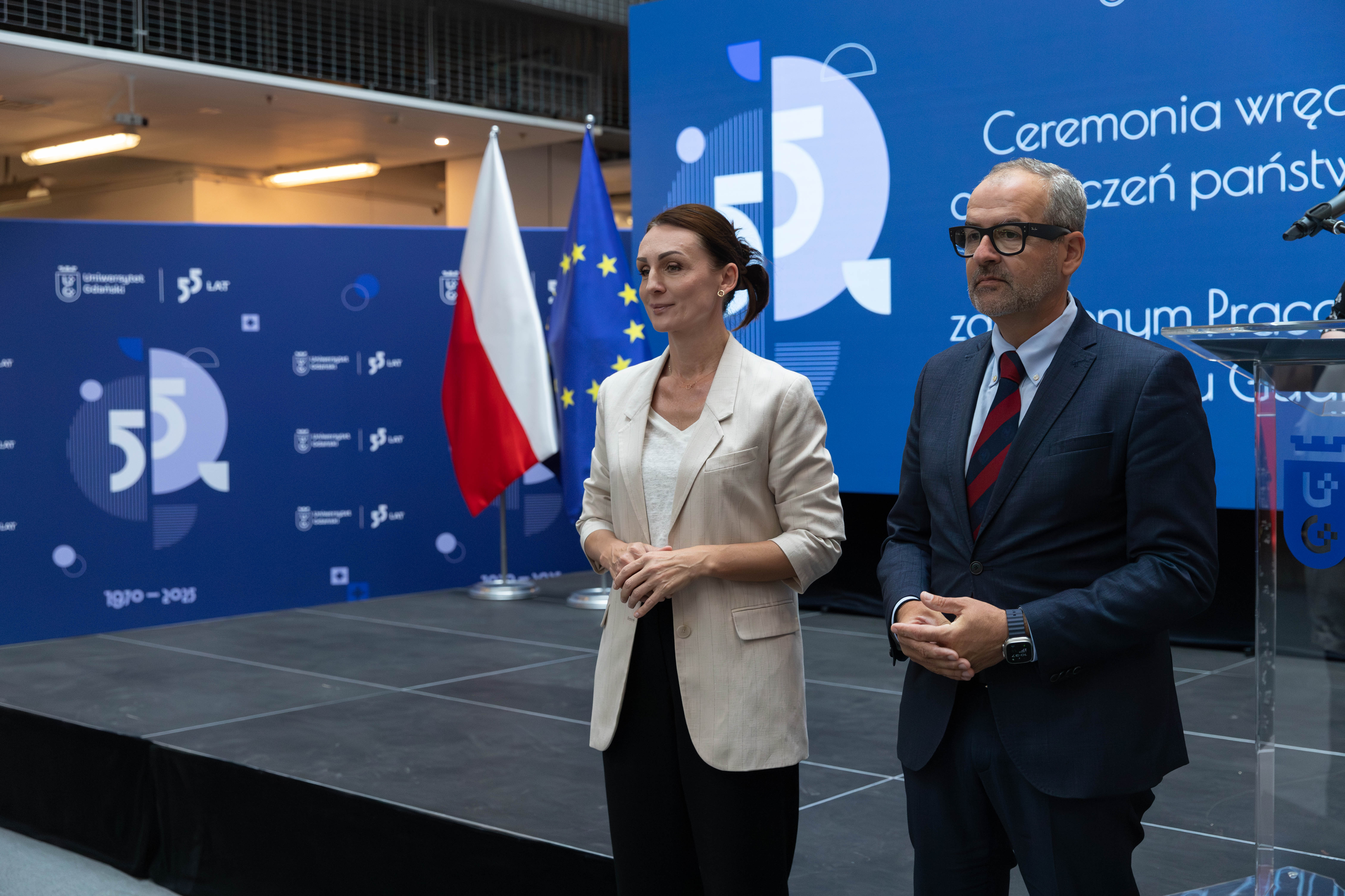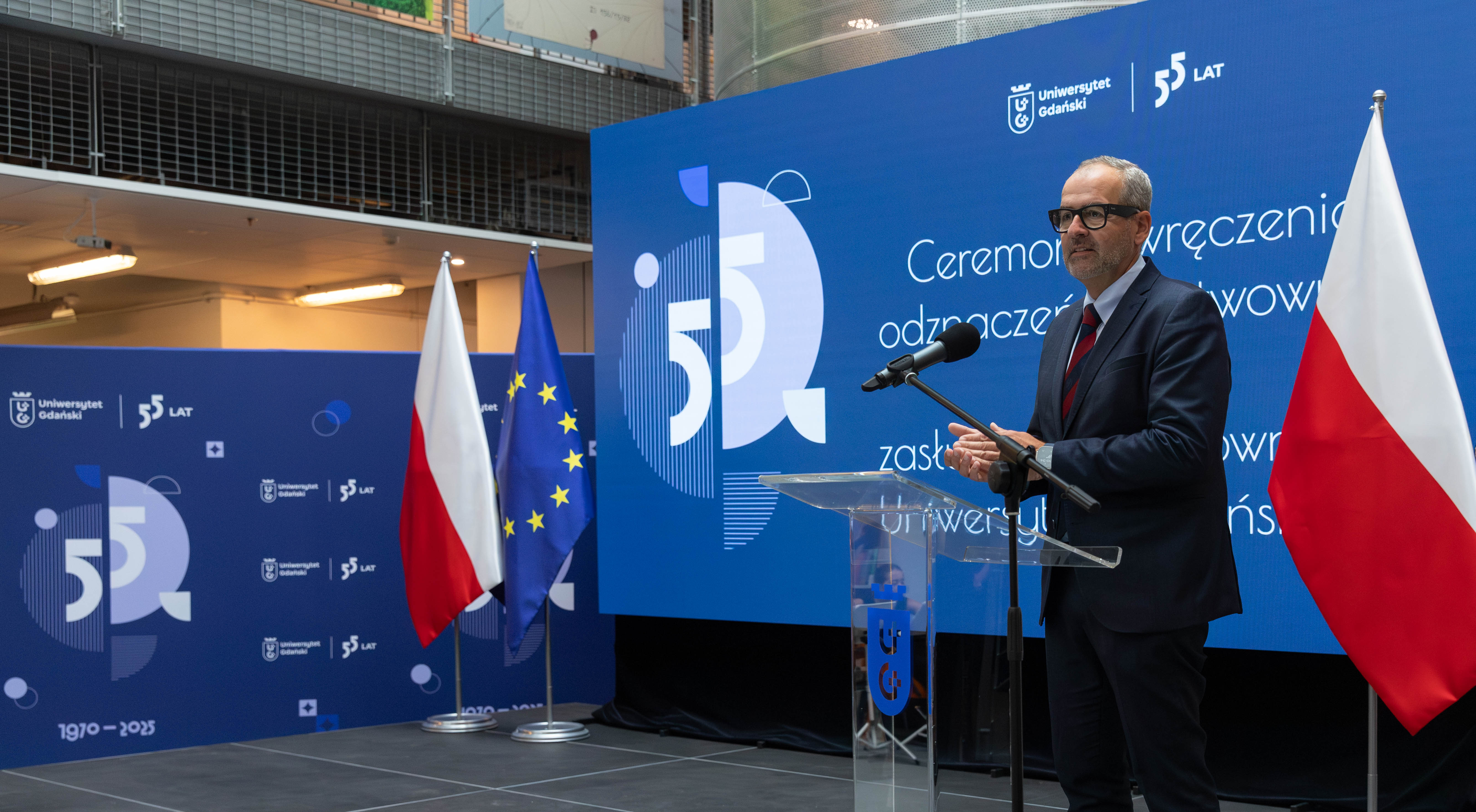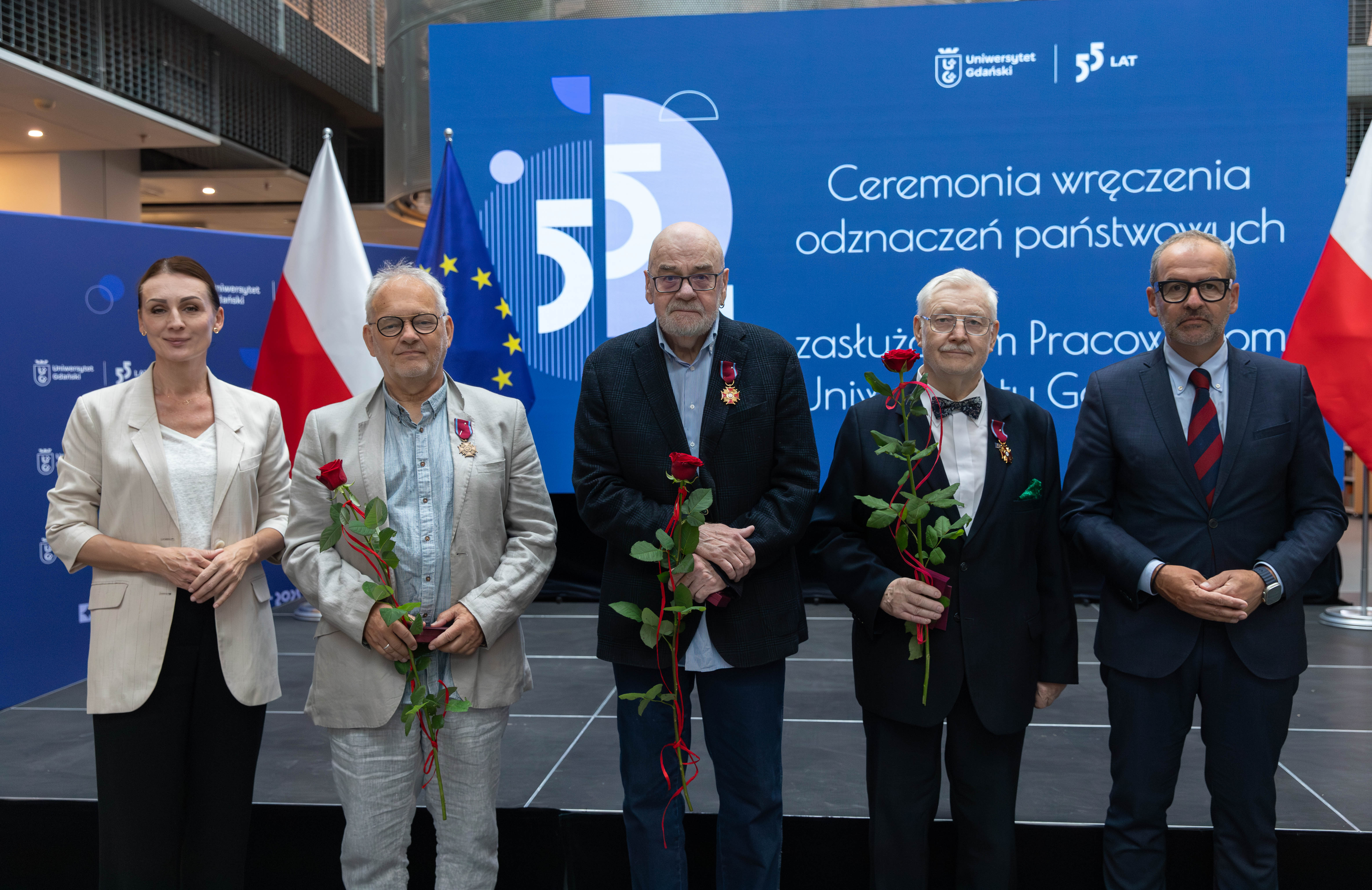 - Uhonorowanie naszych pracowników odznaczeniami państwowymi To przede wszystkim dowód na ta, że cała społeczność Uniwersytetu Gdańskiego pracuje na jego markę, prestiż i rozpoznawalność. To widać nie tylko w naszych znakomitych osiągnięciach naukowych, organizacyjnych i dydaktycznych, ale również w pozycji uniwersytetu w rankingach zarówno krajowych, jak i międzynarodowych - powiedział Rektor Uniwersytetu Gdańskiego, prof. Piotr Stepnowski. - Dzisiaj jesteśmy tu po to, aby uhonorować naszych najwybitniejszych, najbardziej zasłużonych pracowników. Te odznaczenia są dowodem na to, że związaliście swoje życie i pasję z waszą uczelnią. Za to chciałbym wam serdecznie podziękować, bo ten nierozerwalny związek między waszą pracą a uniwersytetem to jest właśnie to dobro, które tworzy jego pozycję zarówno w kraju, jak i za granicą. Serdecznie Państwu gratuluję!