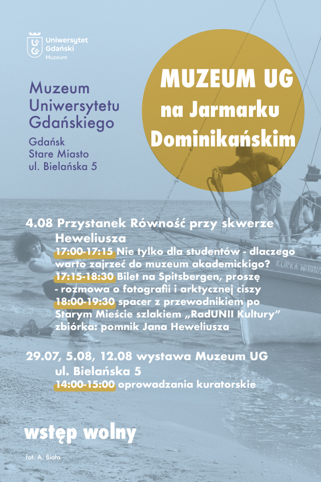 Muzeum Uniwersytetu Gdańskiego zostało ujęte w oficjalnym programie Jarmarku św. Dominika. Z tej okazji w każdy wtorek podczas trwania Jarmarku zaprasza gości do swojej siedziby na oprowadzania kuratorskie po wystawie stałej, a w poniedziałek 4 sierpnia 2025 r. na prezentację Muzeum oraz rozmowę z fotografem Maciejem Żyndą na Scenie Jarmarku św. Dominika przy Skwerze Heweliusza.