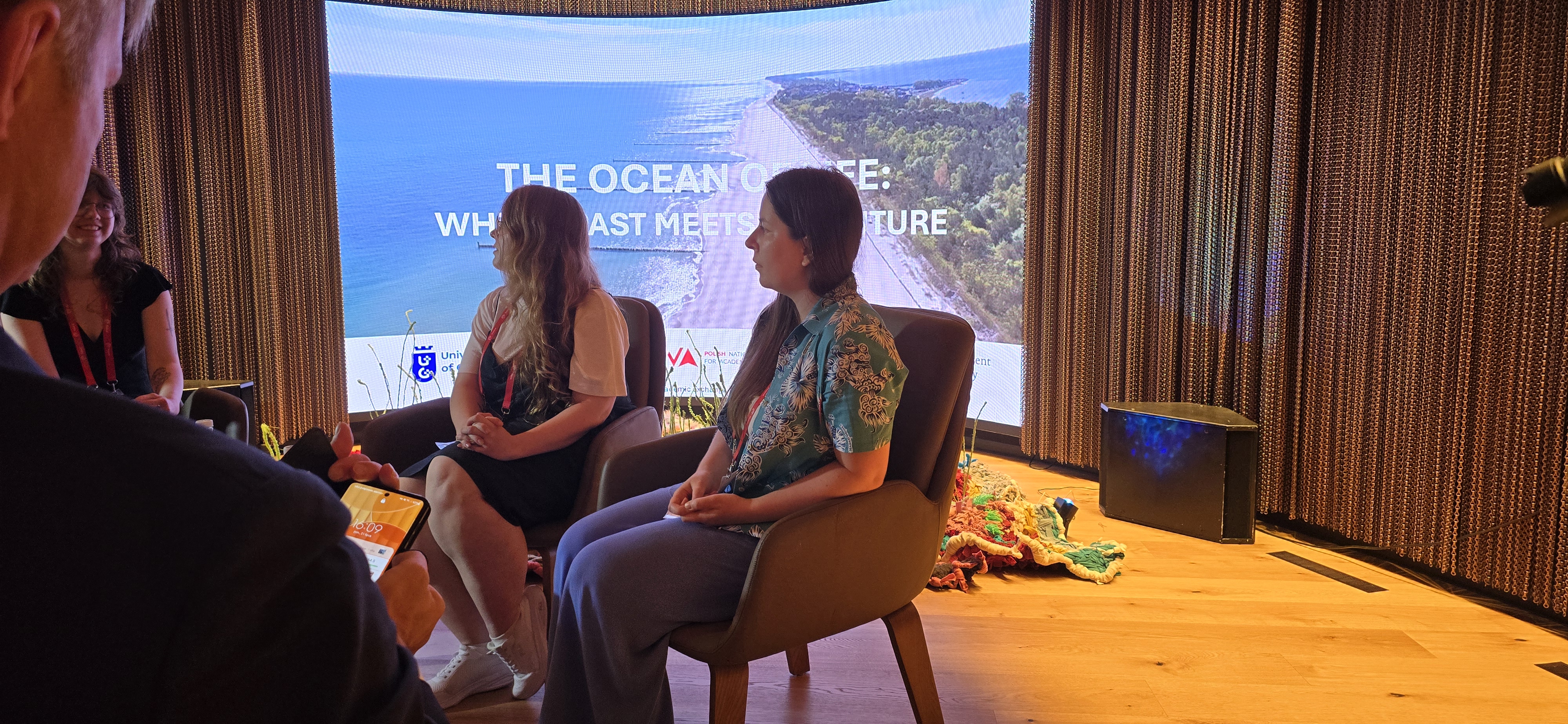 Studenci UG poprowadzili również panel dyskusyjny „Morze w nauce - przeszłość, która jest przyszłością”. Moderatorką dyskusji była dr Justyna Świeżak z Katedry Funkcjonowania Ekosystemów Morskich WOiG UG. W rozmowie uczestniczyli również doktorantka Zofia Konarzewska z Katedry Funkcjonowania Ekosystemów Morskich, studentka Ada Szabelewska z kierunku Marine Biotechnology, dr Maurycy Żarczyński z Katedry Geomorfologii i Geologii Czwartorzędu