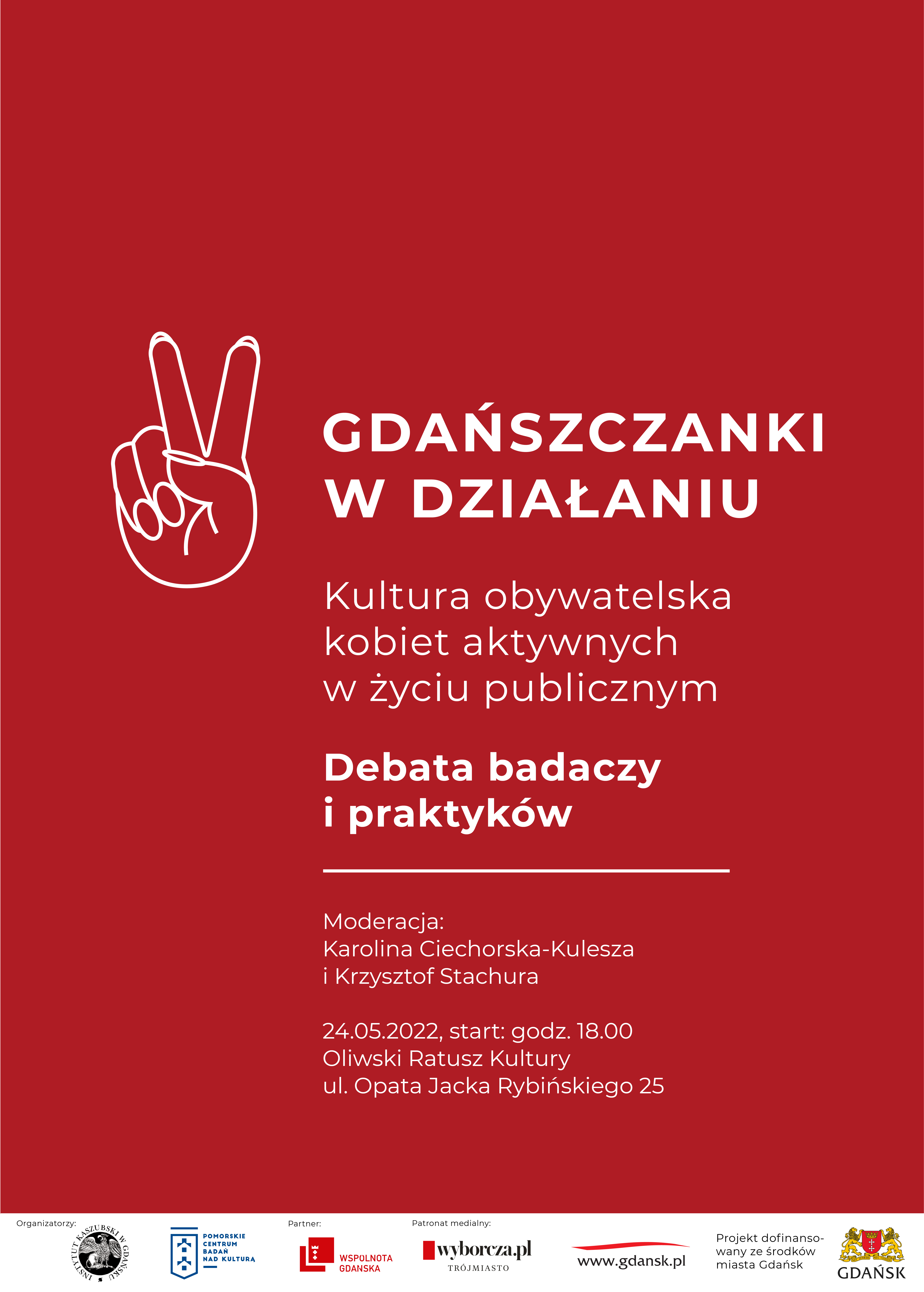 Instytut Kaszubski w Gdańsku i Pomorskie Centrum Badań nad Kulturą Uniwersytetu Gdańskiego zapraszają do udziału w debacie „Gdańszczanki w działaniu. Kultura obywatelska kobiet aktywnych w życiu publicznym” skierowanej zarówno do badaczy, jak i praktyków tej sfery z Gdańska.