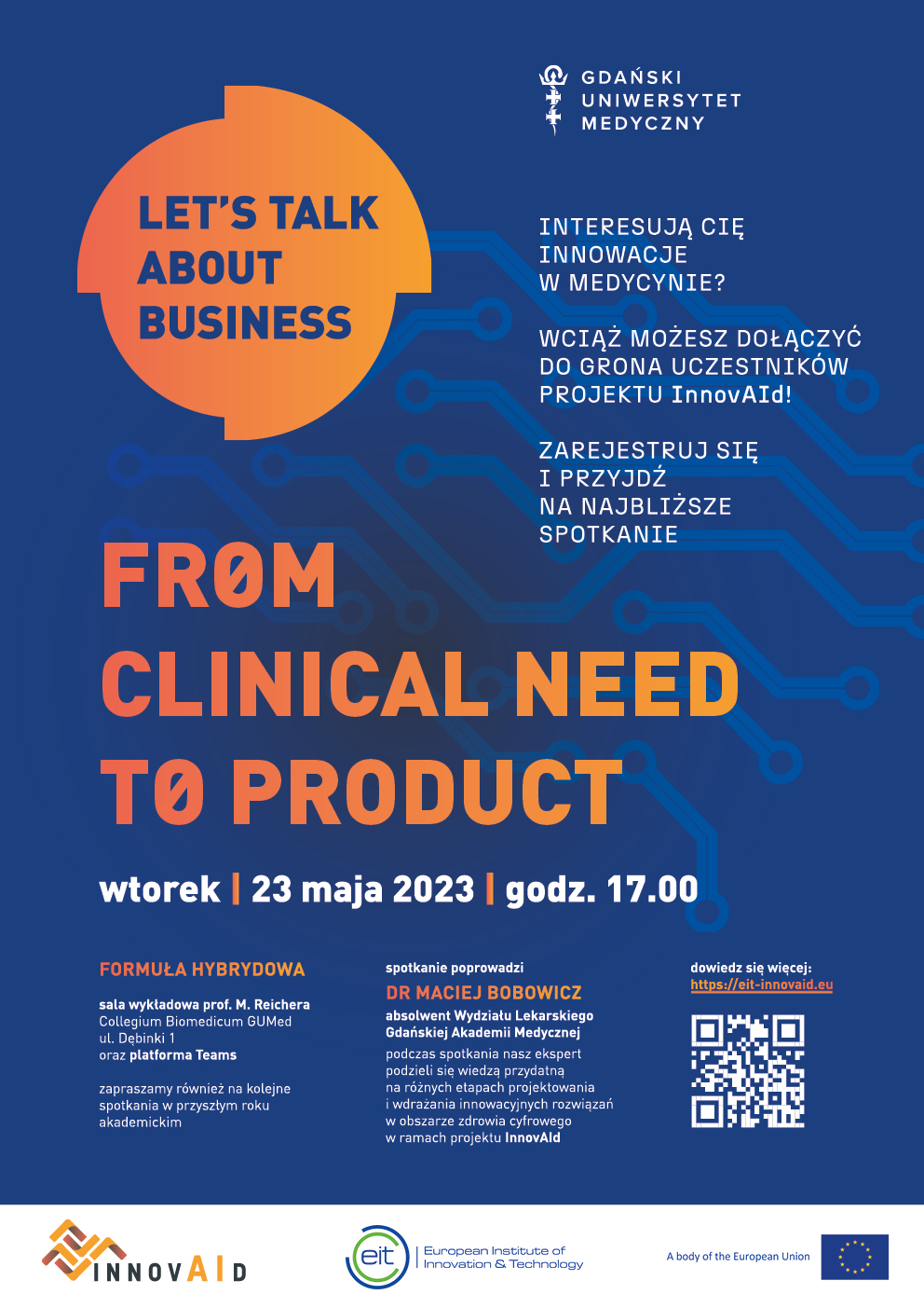 Jak wygląda praca w ramach takiego przedsięwzięcia? Na czym polegają poszczególne etapy projektowania i wdrażania innowacyjnych rozwiązań w obszarze zdrowia cyfrowego? O tym uczestnikom majowego spotkania w ramach projektu InnovAId: From clinical need to product opowie dr Maciej Bobowicz z Katedry i Kliniki Chirurgii Onkologicznej GUMed, entuzjasta odpowiedzialnego wykorzystania potencjału sztucznej inteligencji w medycynie, ze szczególnym uwzględnieniem obrazowania nowotworów. Dr Bobowicz pełni rolę kierownika części klinicznej projektu badawczego „EuCanImage”, który jest finansowany przez Komisję Europejską w inicjatywie Horyzont 2020.