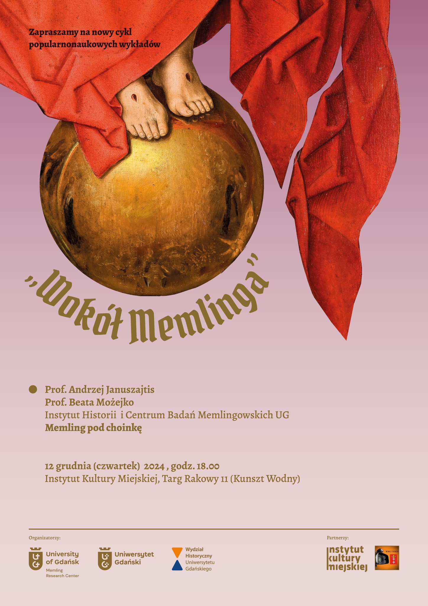 Centrum Badań Memlingowskich UG serdecznie zaprasza na dziesiąty wykład w ramach popularno-naukowego cyklu zatytułowanego „Wokół Memlinga” w dniu 12 grudnia (czwartek) o godz. 18.00.