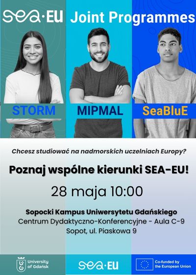 Już 28 maja o godz. 10:00 zapraszamy na wyjątkowe wydarzenie na kampusie Uniwersytetu Gdańskiego w Sopocie, podczas którego poznacie ofertę anglojęzycznych, międzynarodowych kierunków studiów stworzonych przez sojusz nadmorskich uczelni SEA-EU.