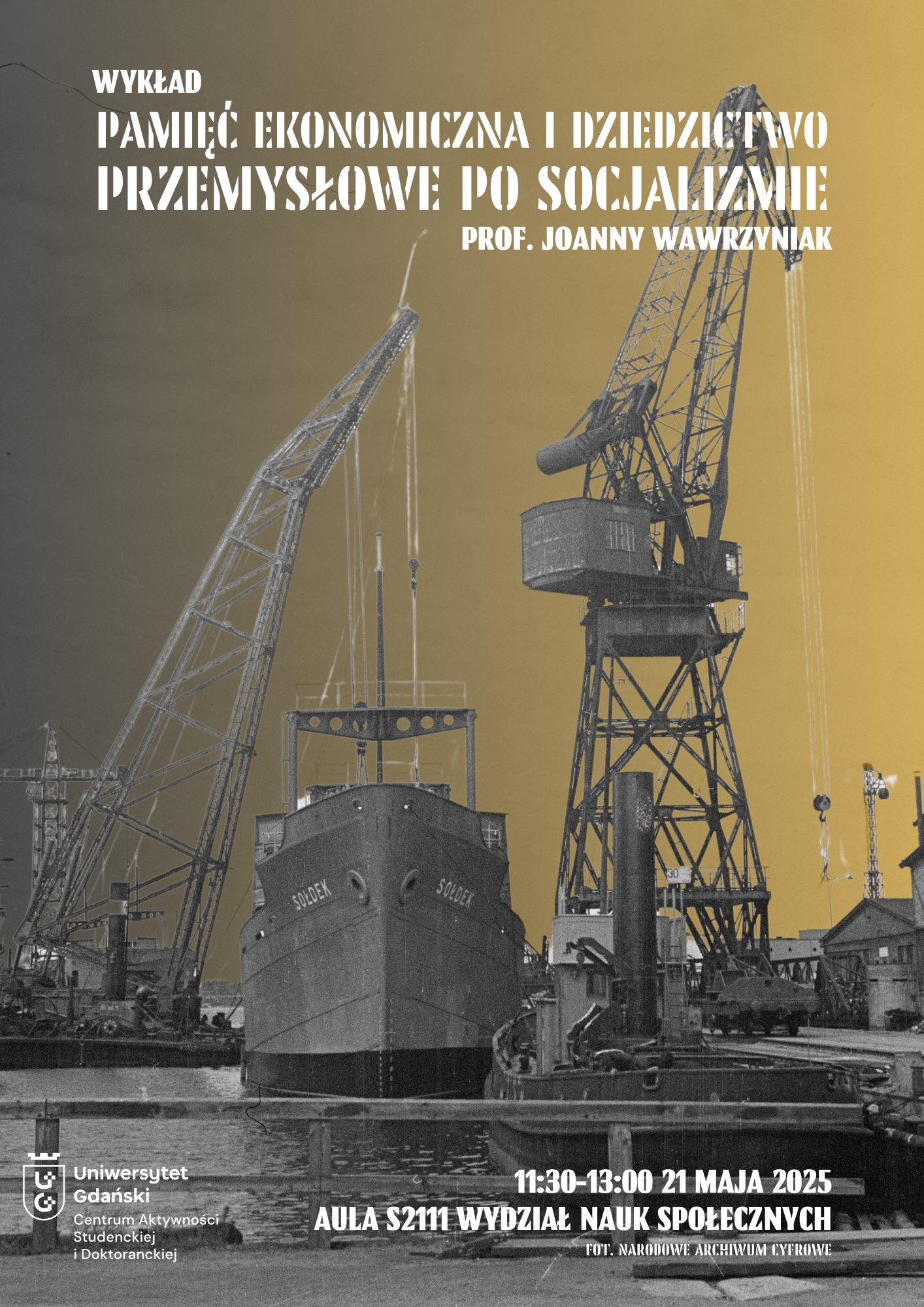 Centrum Aktywności Studenckiej i Doktoranckiej zaprasza na kolejny wykład! Już 21 maja o 11:30 odbędzie się wykład prof. Joanny Wawrzyniak (UW) pt. „Pamięć ekonomiczna i dziedzictwo przemysłowe po socjalizmie”. Zapraszamy do auli S211 Wydziału Nauk Społecznych UG.