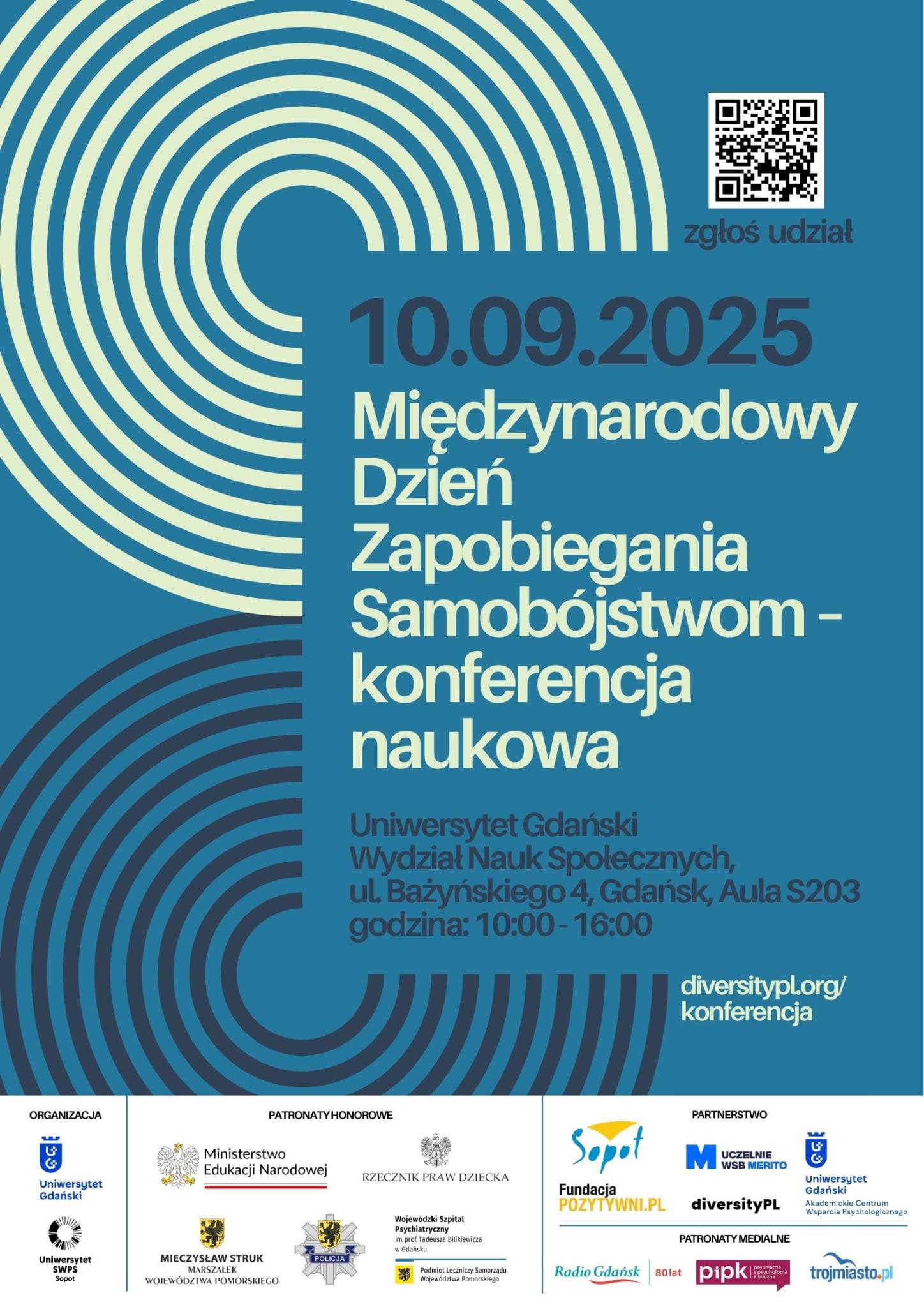 10 września to Międzynarodowy Dzień Zapobiegania Samobójstwom. Tego dnia na Wydziale Nauk Społecznych UG odbędzie się konferencja naukowa poświęcona profilaktyce, promocji zdrowia psychicznego oraz wspieraniu działań interwencyjnych i edukacyjnych w tym obszarze.