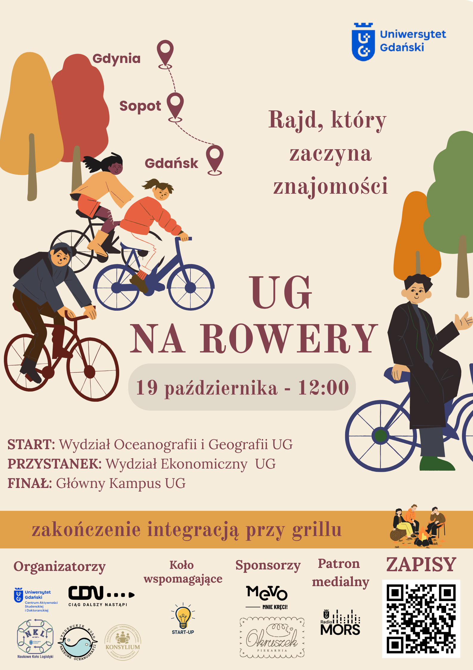 Chcesz aktywnie spędzić czas, poznać nowe osoby i zobaczyć trzy kampusy Uniwersytetu Gdańskiego z rowerowej perspektywy? Dołącz do Rajdu Rowerowego UG! Zapraszamy do udziału wszystkich członków społeczności akademickiej!