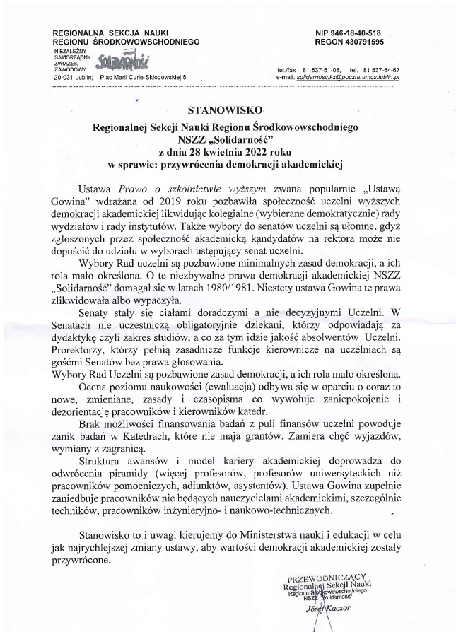 Uniwersytet Gdański, Komisja Zakładowa NSZZ "Solidarność"ul. Bażyńskiego 1A, 80-952 Gdańsk