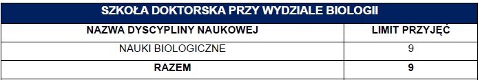 Limit przyjęć do Szkoły Doktorskiej przy Wydziale Biologii/ Admission limit for the Doctoral School at the Faculty of Biology