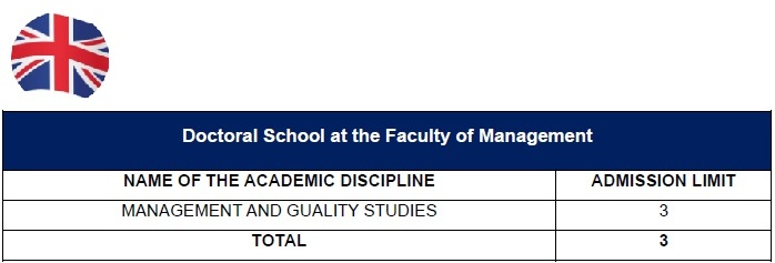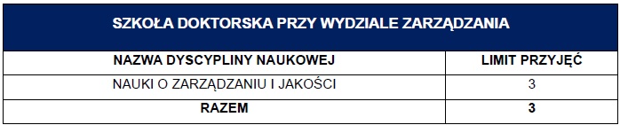 Limit przyjęć do Szkoły Doktorskiej przy Wydziale Zarządzania/ Admission limit for the Doctoral School at the Faculty of Management