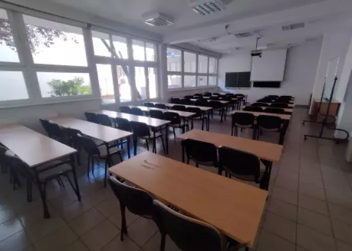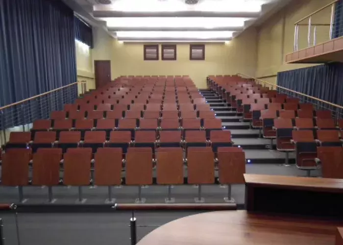 Niewielka aula płaska, odpowiednia dla maksymalnej liczby 88 osób, standardowo wyposażona w rzutnik multimedialny oraz ekran. Zlokalizowana na I piętrze w budynku wyposażonym w windę. Pomieszczenie jasne, z dużymi oknami, które w każdej chwili można zasłonić sterowanymi elektronicznie roletami.