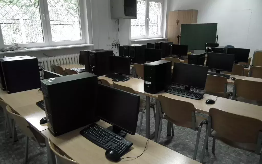 Dwie w pełni wyposażone pracownie komputerowe odpowiednio dla 11 i 12 osób. Pomieszczenia wyposażone w stanowiska komputerowe (komputery stacjonarne lub laptopy) oraz rzutniki multimedialne i ekrany projekcyjne. Rolety w oknach umożliwiają zaciemnienie podczas zajęć.