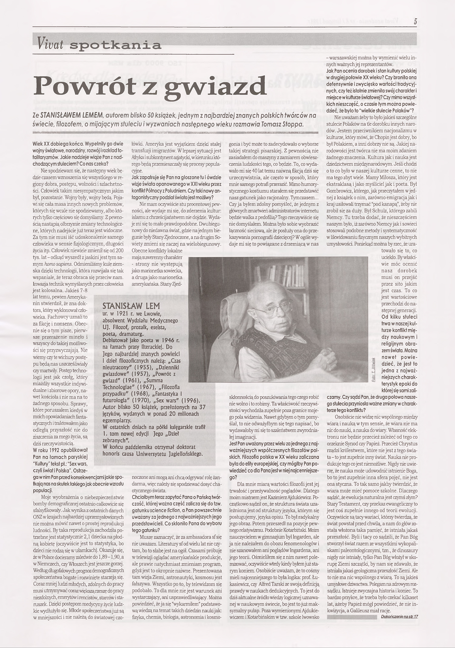 - 'Stanisław Lem, next to the famous Nobel laureate Henryk Sienkiewicz and much more hermetic fathers of our avant-garde - Witkacy, Bruno Schulz, Witold Gombrowicz - enjoys the greatest recognition among the international community of readers,' argues dr Maciej Dajnowski. - 'At the same time, Poles are still not aware (and perhaps never will be) of the unique artistic and intellectual phenomenon of "Lem's comet" - the image of a talented, widely read (and purchased) creator of science fiction persists. Lem was also, but by no means exclusively, such a creator,' he adds.