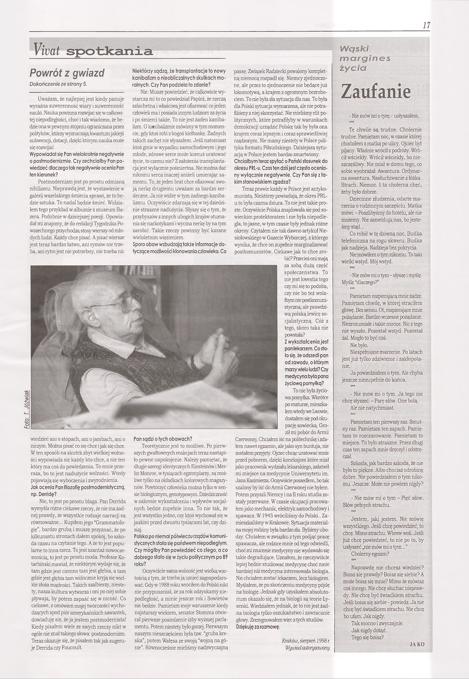 The anniversary year has become a pretext for many celebrations that remind us of the writer's contribution to Polish culture and our intellectual life. - 'One of them will be the premiere of a film by Marek Wojtasik and Paweł "Paulus" Mazur "Lem and Mrożek. Reaktywacja", based on the two writers' correspondence published by Znak in 2011,' announces dr Maciej Dajnowski.