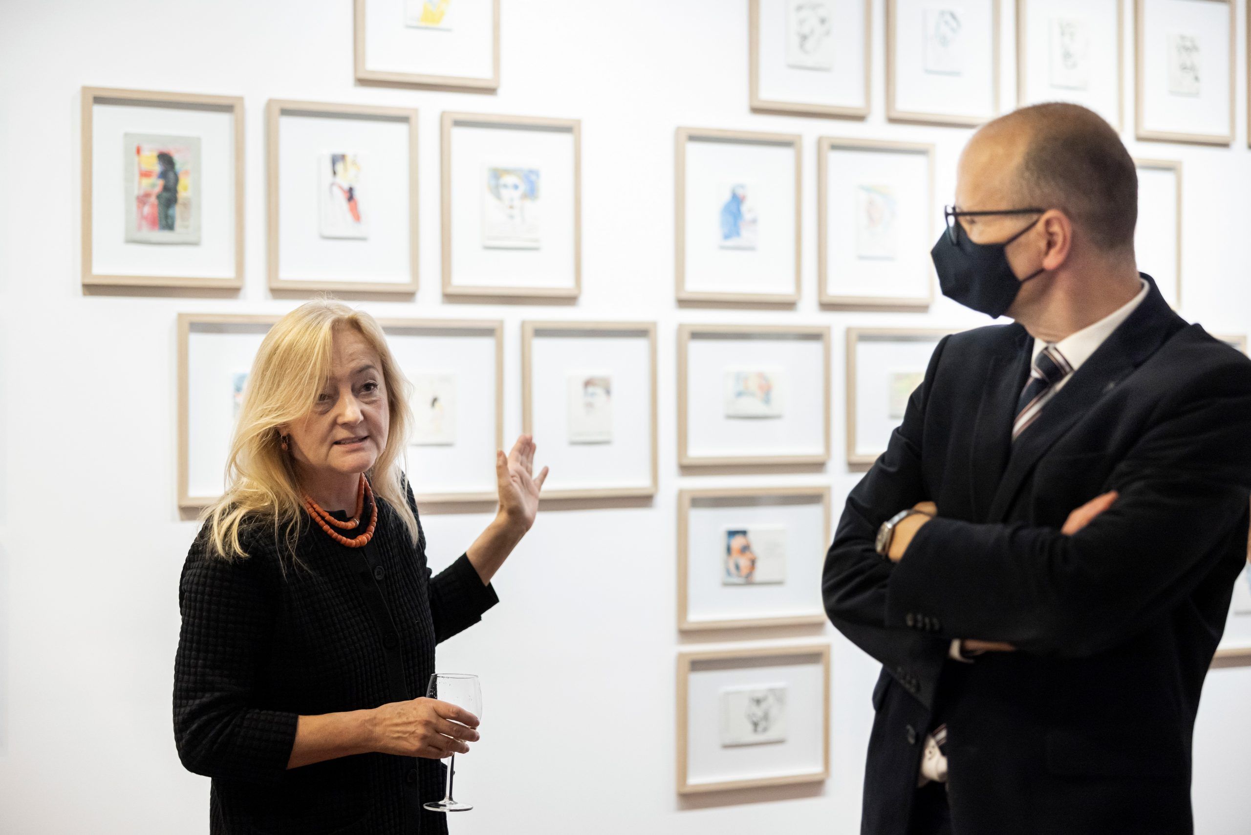 A large, perhaps even larger part of the exhibition in BUG is taken up by portraits. Often drawn in a hurry, with a few well-defined pen, crayon or marker lines, they reflect the characteristic features of famous faces from the artistic world of the '80s and '90s. Among them, besides the portraits of his wife, there are images of many friends and acquaintances of the Master, often accompanied by personal comments.