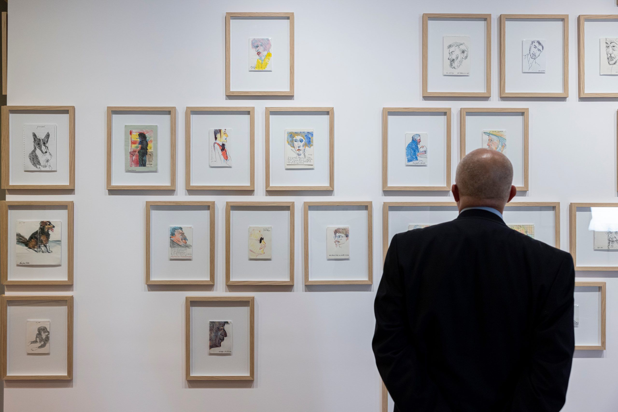 On small sheets, sometimes scraps of paper, we recognise unforgettable faces of the world of cinema and culture, such as Piotr Skrzynecki, Gustaw Holoubek, Stanisław Lem, Sławomir Mrozek, Józef Czapski or Robert Altman. But also people, figures from the director's life and his civic and political involvement such as Lech Wałęsa, Jacek Kuroń, the Dalai Lama or Tadeusz Fiszbach.