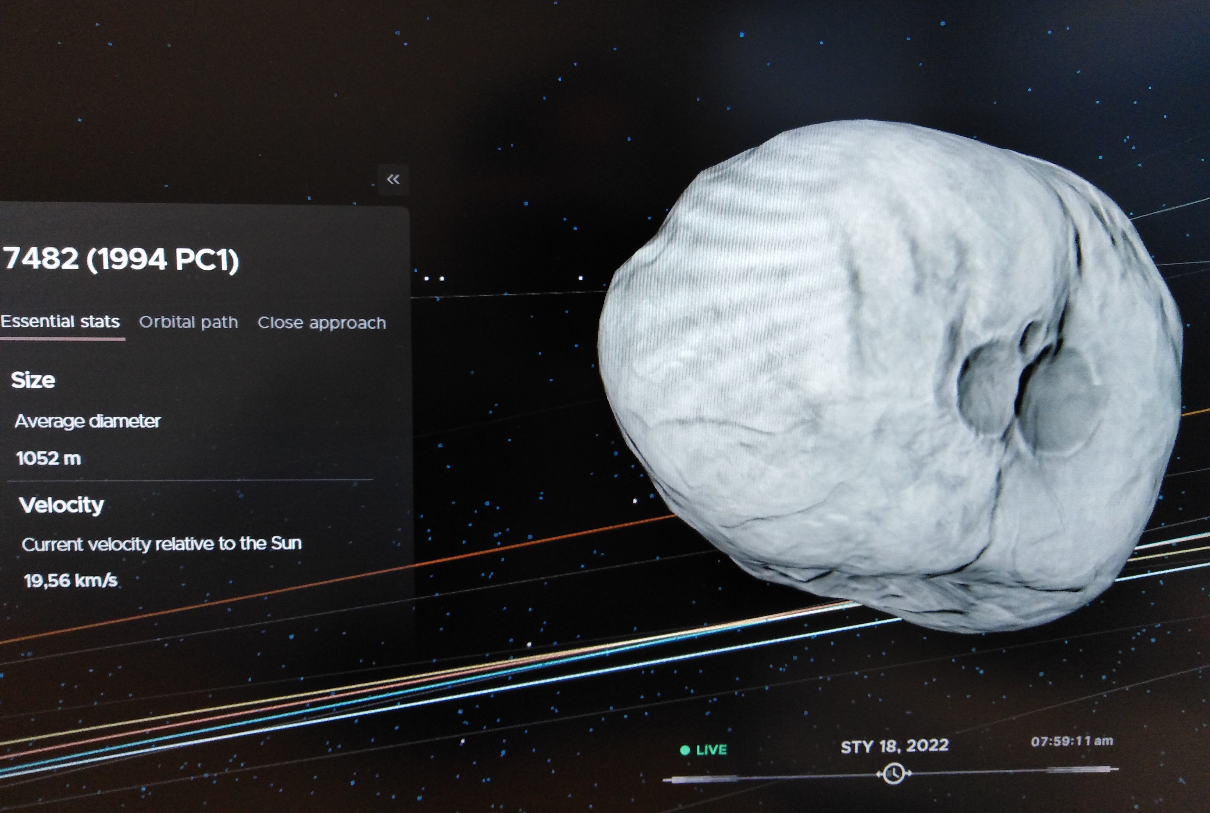 Asteroid (7482) 1994 PC1 is one of the largest to approach Earth in the coming time. It has a diameter of more than 1 km and is among the larger ones. Let us add that almost every day objects several dozen metres in diameter pass the Earth at various distances. As scientists predict, it is relatively fast and will pass our planet at a distance of almost 2 million km (about five times the distance between the Earth and the Moon). Another close encounter will be possible in about 80 years.
