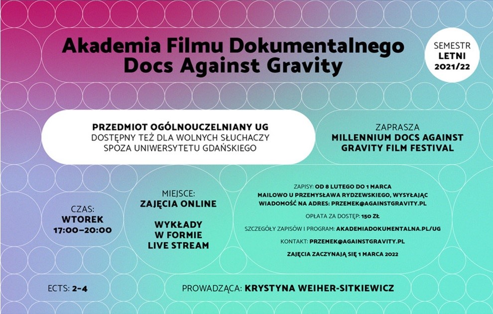 All details, the latest film programme and information on how to make the payment at: https://www.akademiadokumentalna.pl/ug-akademia-filmu-dokumentalnego-do…