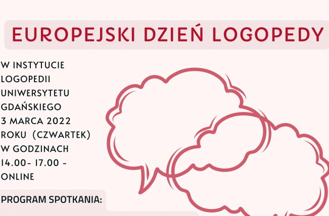 The celebration of the European Day of the Speech Therapist will take place on March 3, 2022, at the Institute of Speech Therapy of the University of Gdańsk. The programme includes online speeches.