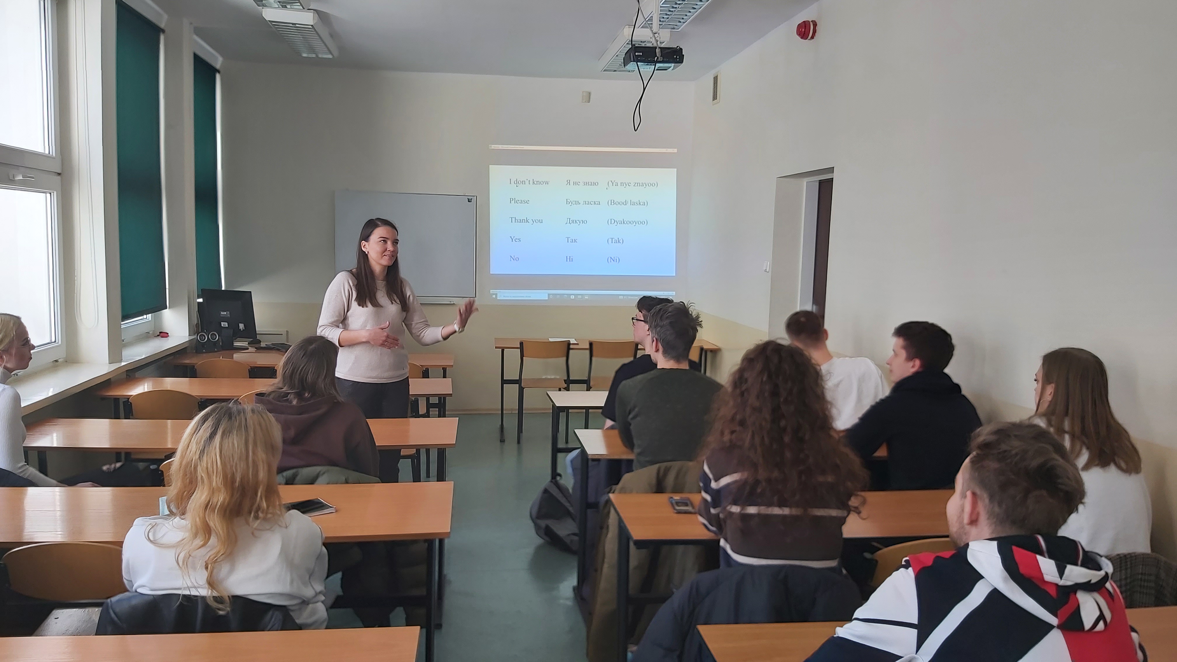During the presentation, Ms Kateryna Zelinska introduced the participants to the history, language and culture of Ukraine. Students had the opportunity to learn some interesting facts about this largest European country in terms of area, listen to traditional Ukrainian songs and poetry. They also learned basic phrases in Ukrainian.