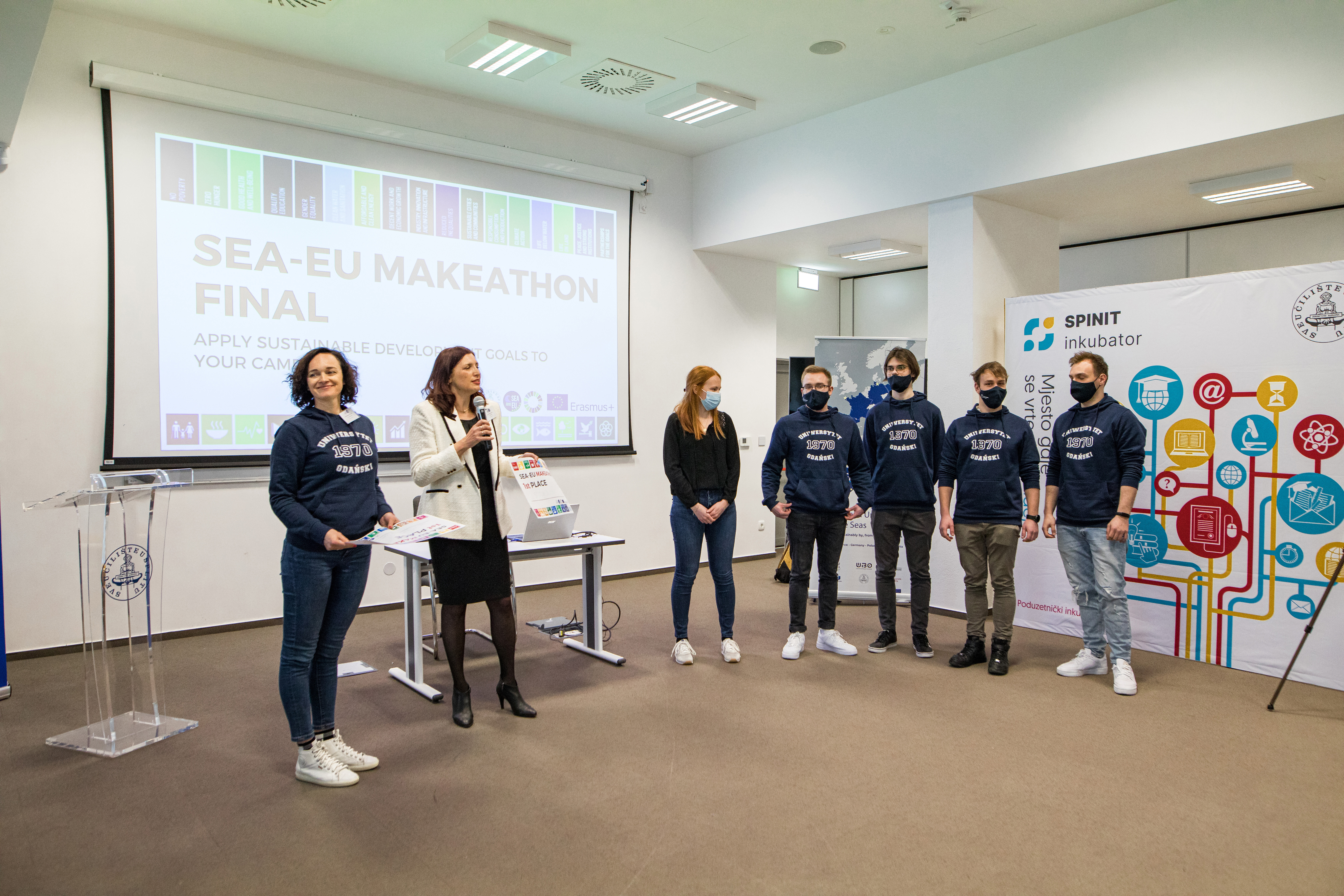 The finals of the SEA-EU Makeathon competition were held in the Croatian Science and Technology Park in Split. The event was attended by finalists of local makeathons organised earlier at SEA-EU partner universities, from Brest, Malta, Cadiz, Split and Gdańsk. Our team has won!