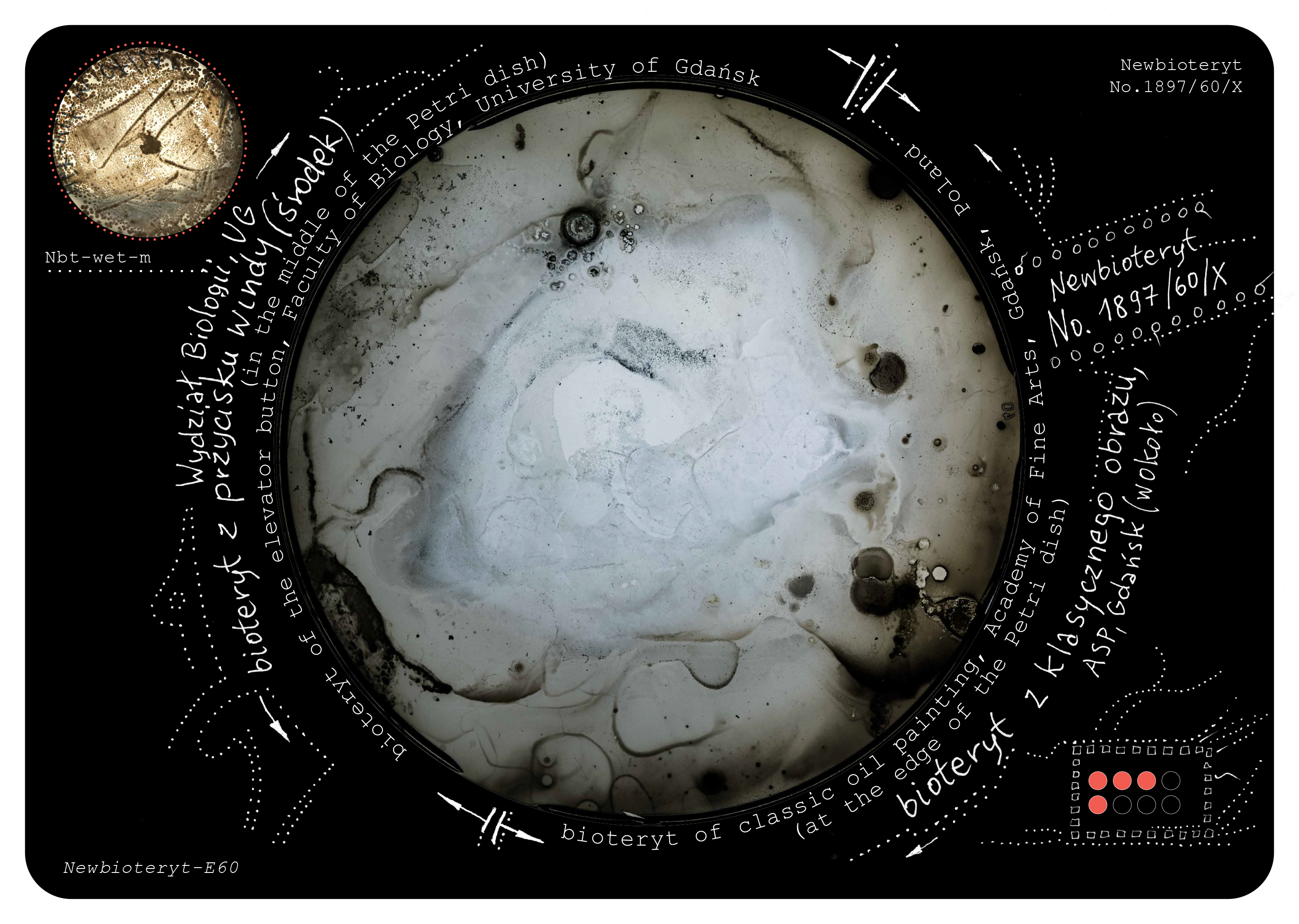 The project authors explain, INKU incubator emphasizes that we as people cannot be certain of anything – least of all our world domination. The world of microorganisms is not separated from the people’s world- we have only one, shared reality, where definitely we are not gods. In this perspective, the world of microbiology is the co-author of the work of art. The piece is not an artefact put into an art gallery. It is a living, symbiotic organism working regardless of the place it is located at. It might be a laboratory, scientific conference, as well as a space for art exhibition. Microorganisms, viruses, human cells and proteins are actors being at the same level as ‘we’ are. ‘We” means exactly the same as microorganisms, viruses, human cells and proteins. The project includes references to Bruno Latour Actor-Network Theory (ANT).