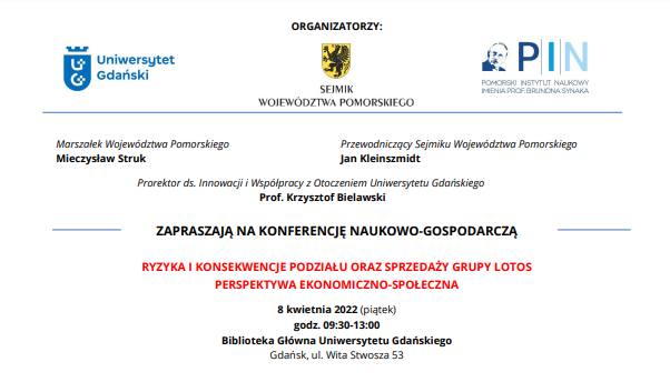 Registration for the scientific and economic conference 'Risks and consequences of division and sale of the Lotos Group. Economic and social perspective' is open until April 7.