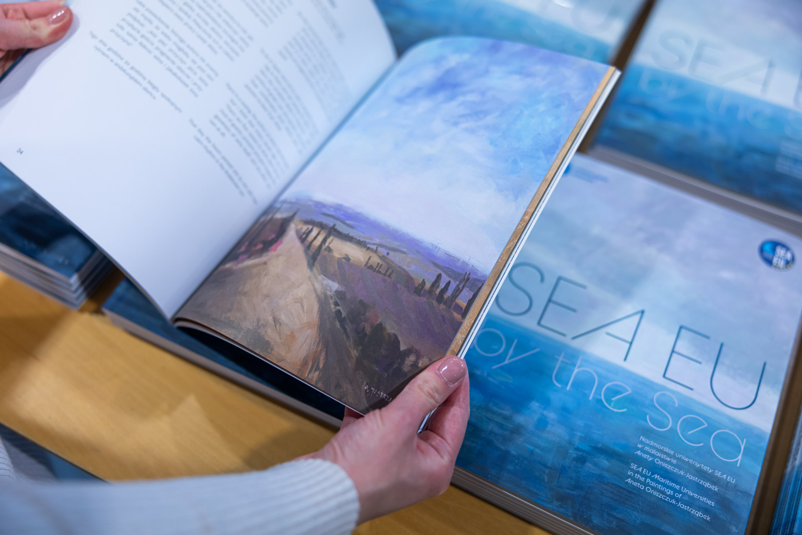 At that time, she was also entrusted with the management of the SEA EU project, which formally became operational on October 1, 2019. This initiative had a great impact not only on prof. Aneta Oniszczuk-Jastrząbek's day-to-day Vice-Rector duties, but also generated a lot of positive emotions, which translated into an original art project - a plan to paint a picture of each city where a SEA EU partner university is located. After assuming successive administrative posts - a member of the directorate of the Inter-University Centre for Informatisation from 2020, director of the Centre for Communication and Promotion of the University of Gdańsk from 2020-2021, and deputy chancellor for Informatisation, Communication and Promotion of the University of Gdańsk from 2021 - she no longer managed the SEA EU at the University of Gdańsk but continued her art project related to it. Its aftermath is the exhibition SEA EU by the Sea. SEA EU coastal universities in the paintings of Aneta Oniszczuk-Jastrząbek and the accompanying catalogue.