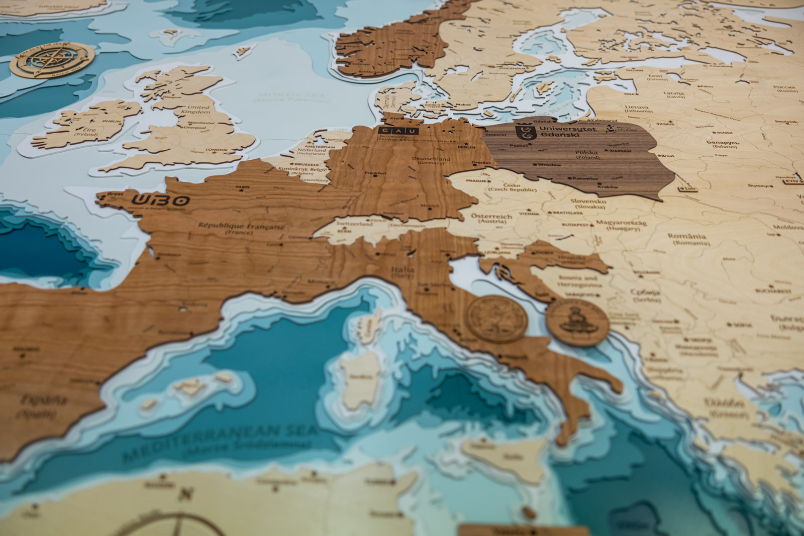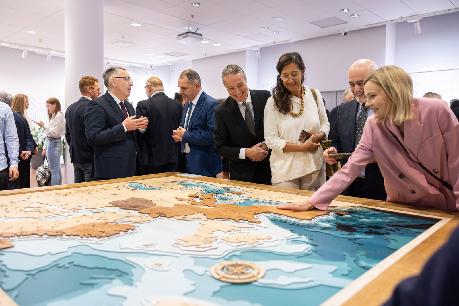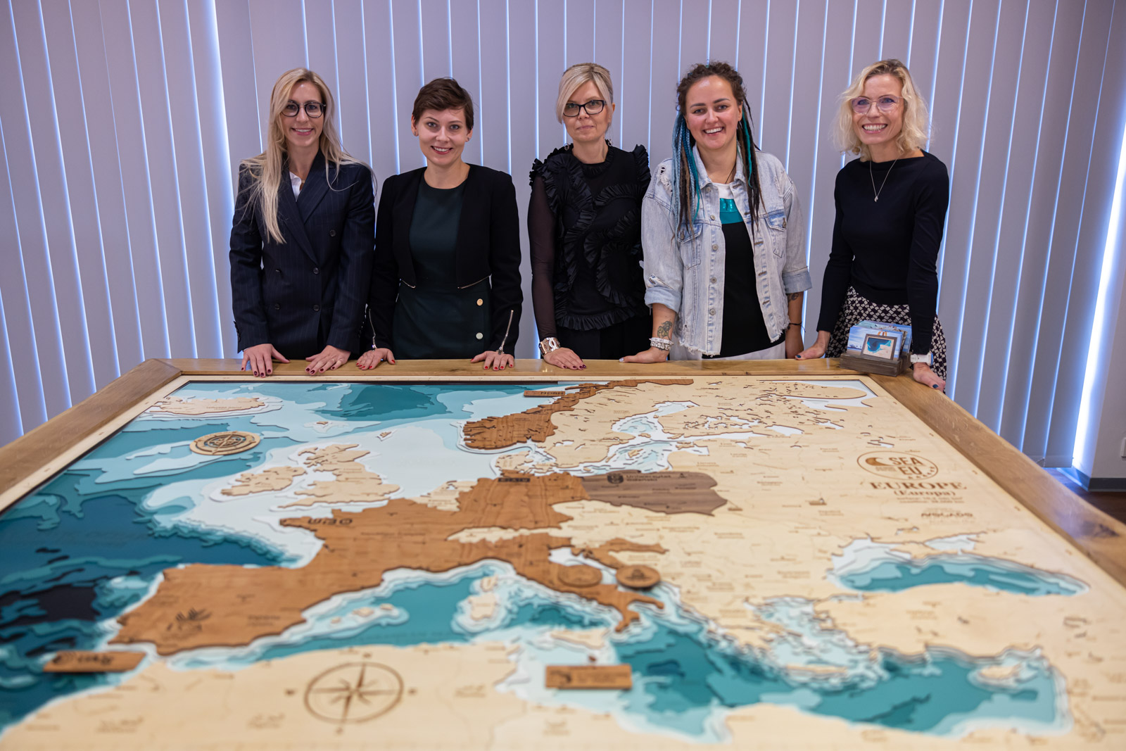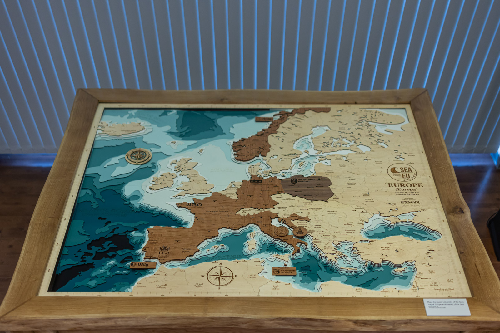 - 'Working on the exhibition was a great pleasure and an extraordinary experience. The exhibition tells the story of the SEA EU project from a slightly different angle - through art that presents the extraordinary moments of the project. It is a story about the sea, passion, vision, meetings, friendship, relationships, emotions, and the people who made the SEA EU project happen,' - said curator Marta Szaszkiewicz. - 'An additional element of the exhibition is an absolutely unique wooden map of Europe, which presents the countries associated with the project. The map was made by the Gdańsk-based company Avocado Pracownia Twórcza. In addition to the land, the map also shows the maritime layer, which is something we were very keen on. All of the SEA EU states are connected by the sea, hence the idea to introduce an additional element to the exhibition, namely a three-dimensional sea map.'