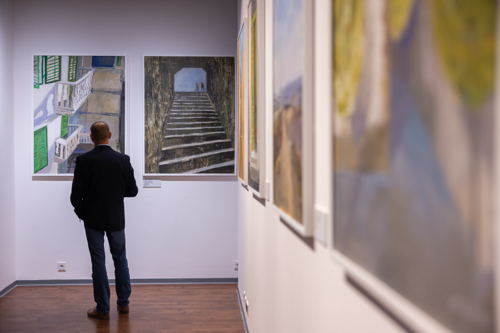The exhibition features 11 paintings from seven SEA EU partner cities: Gdańsk, Cadiz, Malta, Split, Kiel, Brest and Brussels. And it is the painting 'Brussels in the rain' that opens the bilingual catalogue prepared by the University of Gdańsk Publishing House on the occasion of the exhibition. The paintings presented in the catalogue are accompanied by the author's memories and reminiscences of the cities in which the partner universities of the SEA EU are located: 'I get on. Traffic jams. Talking to a taxi driver about nothing. It's raining. I don't have an umbrella. 9.10 am and still 2 kilometres to go. 9.15 am. "Look, there's the Brittany representation," says the taxi driver. Traffic jams. I pay and get off in the middle of the junction. It will be faster. "Be careful!" - I hear, closing the door. It's raining. It's grey. I shuffle between cars in high heels. People are hurrying to work, crowding at the pedestrian crossing. Here I am.'