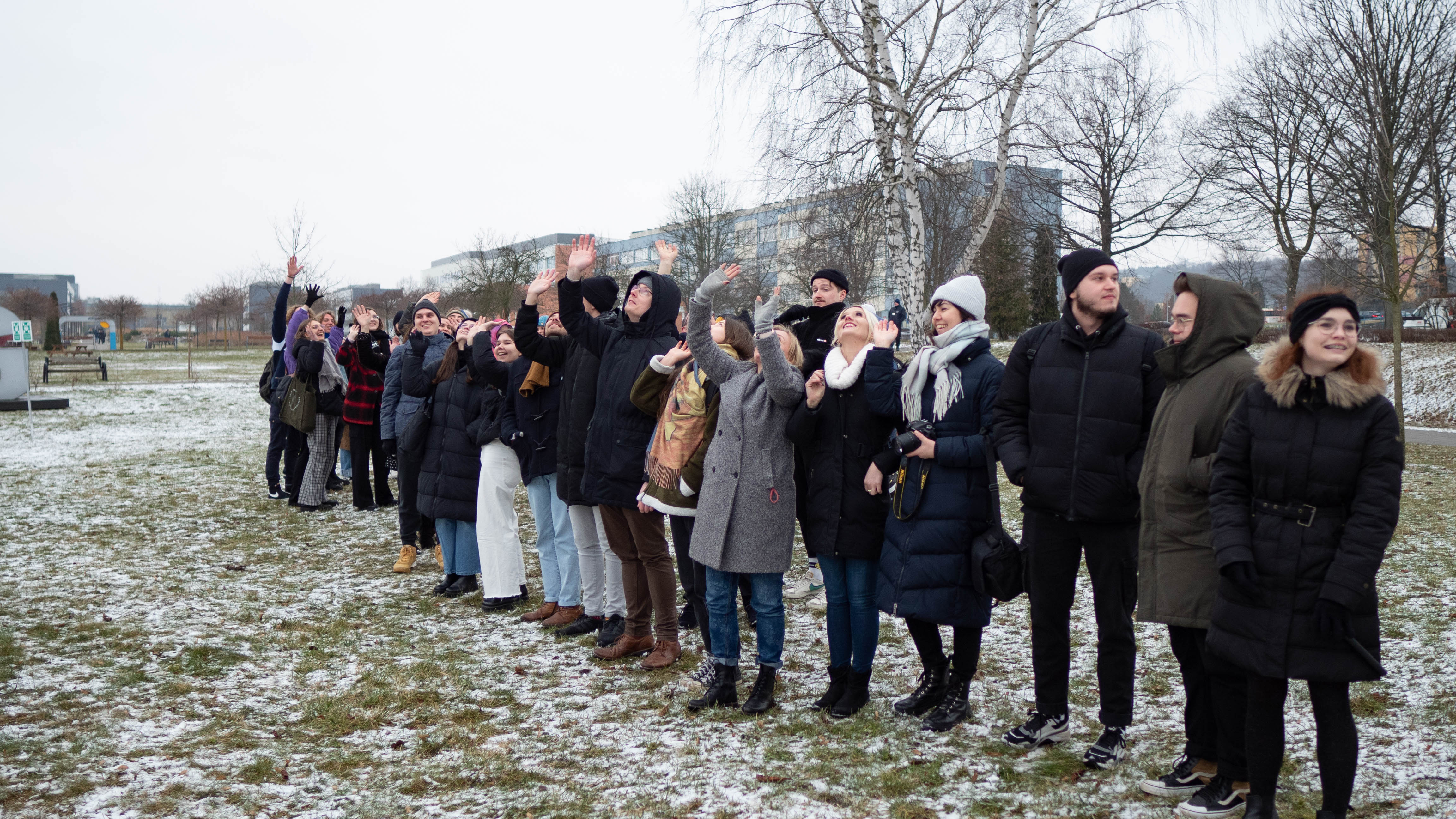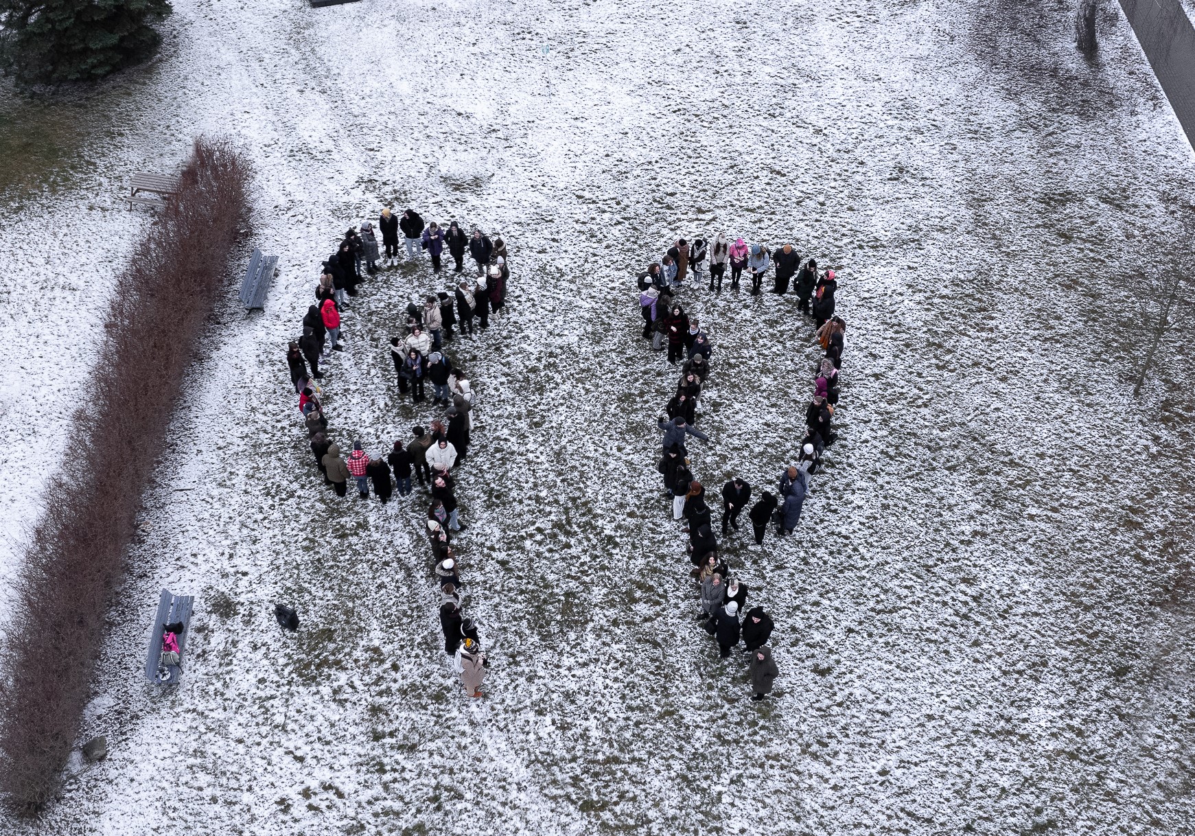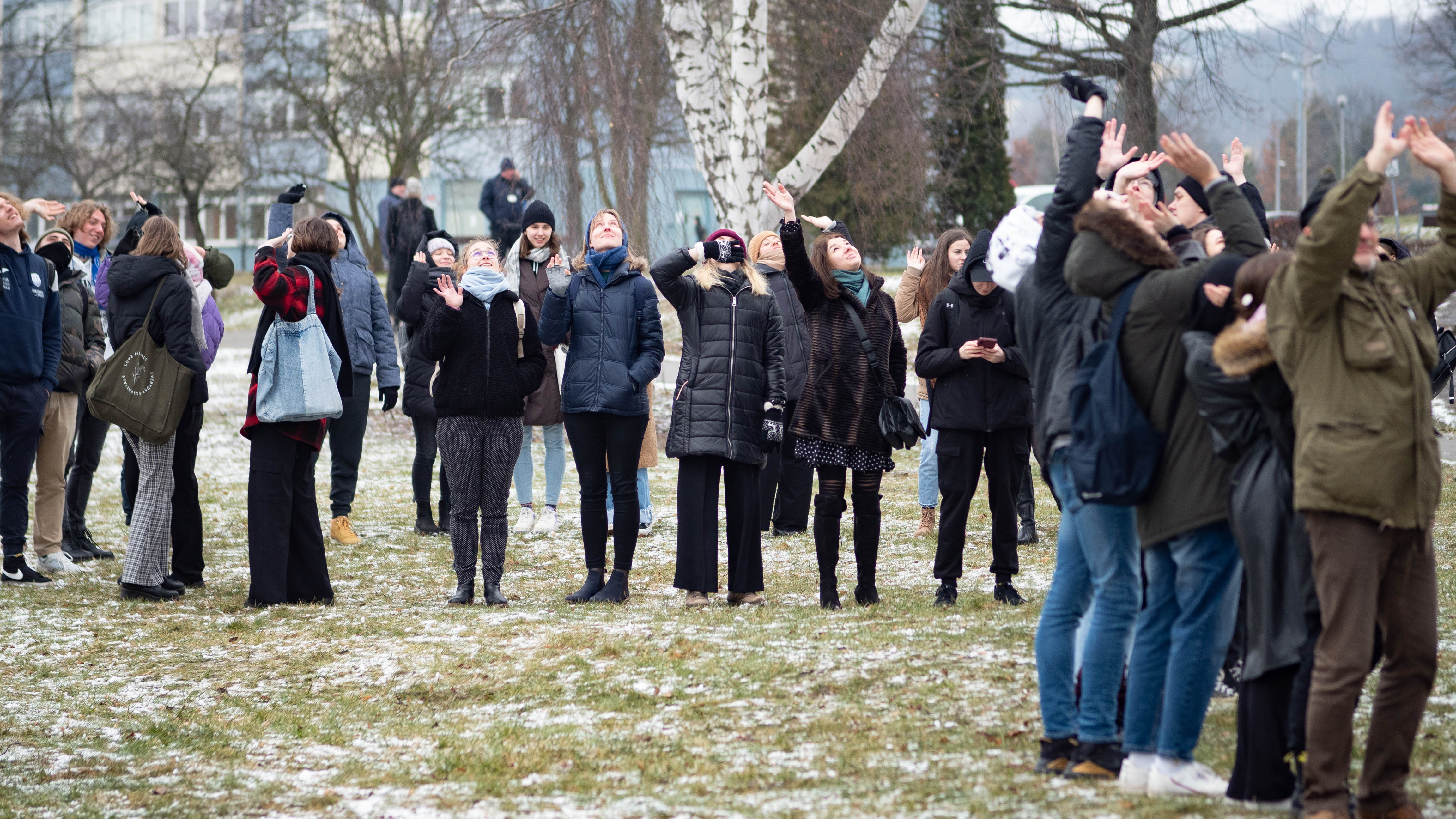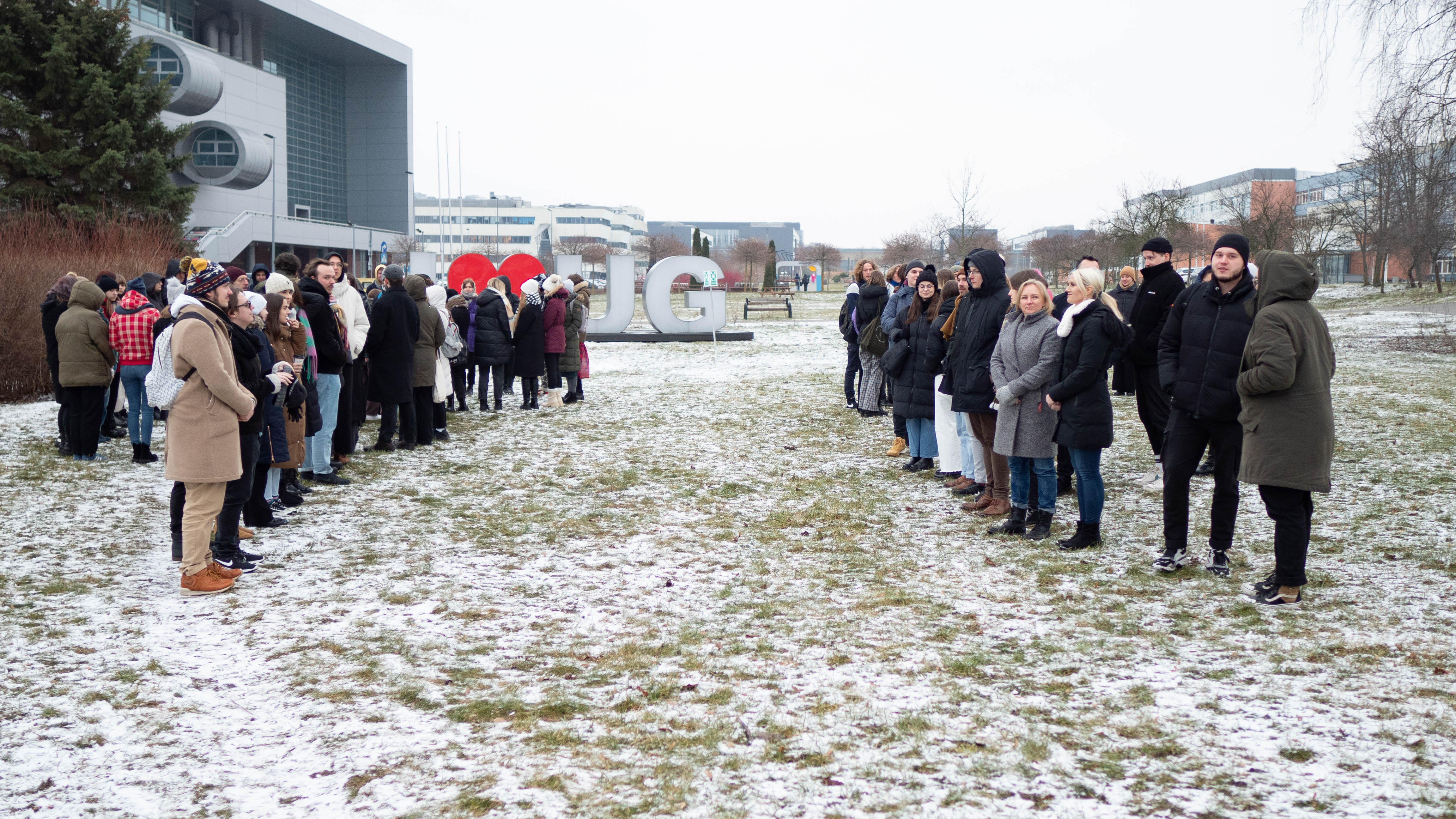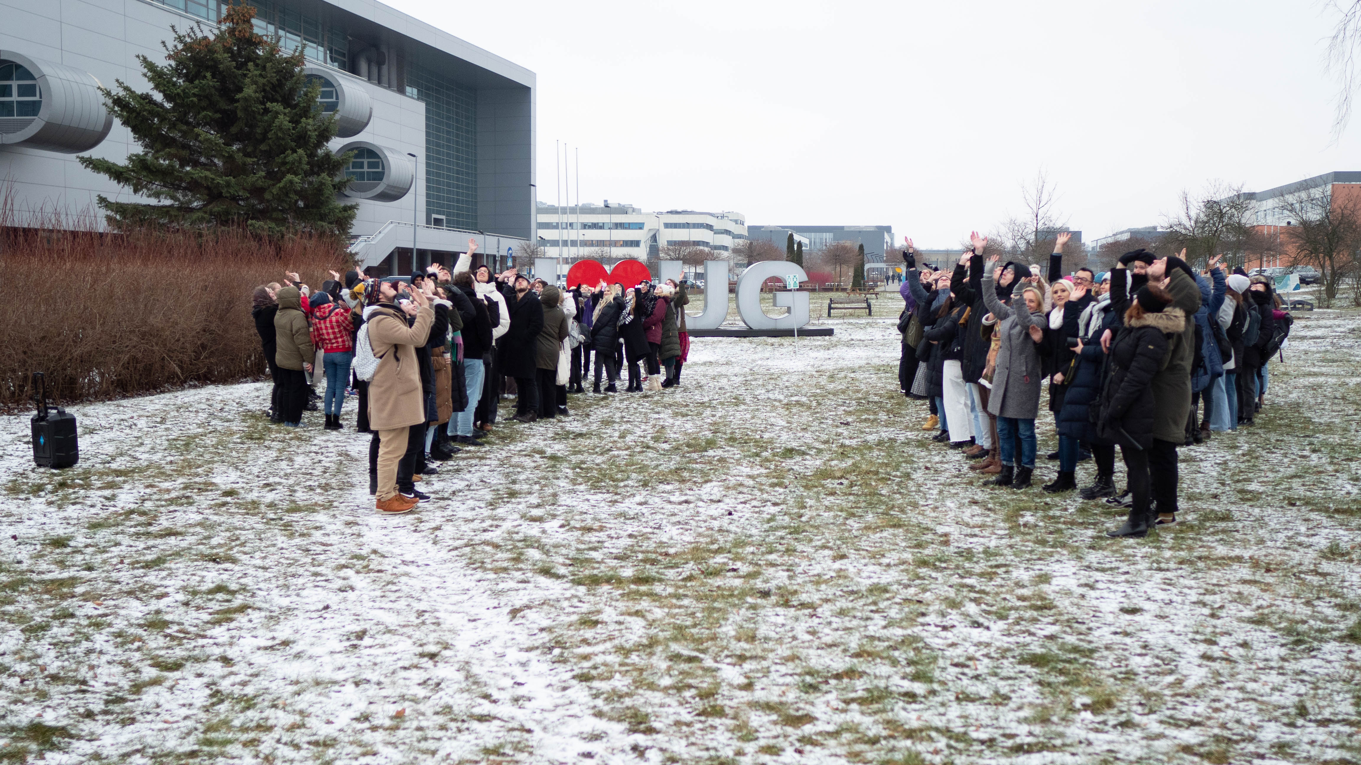 - On March 7, a flash mob took place on our campus, during which we jointly built 'living kidneys' visible from a bird's eye view. Members of our academic community were able to be together and act for an important cause. The photo taken promotes educational materials related to World Kidney Day at UG.