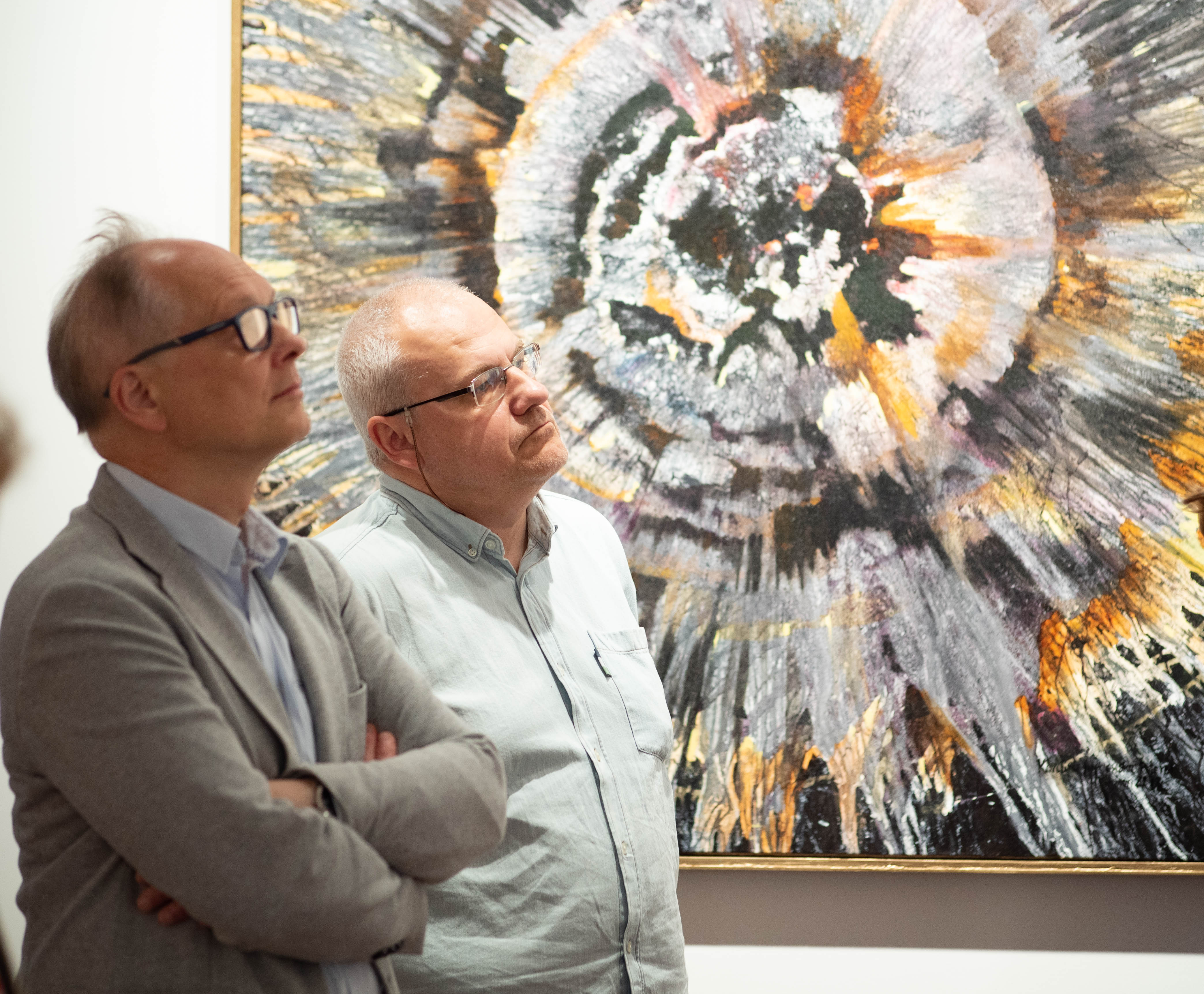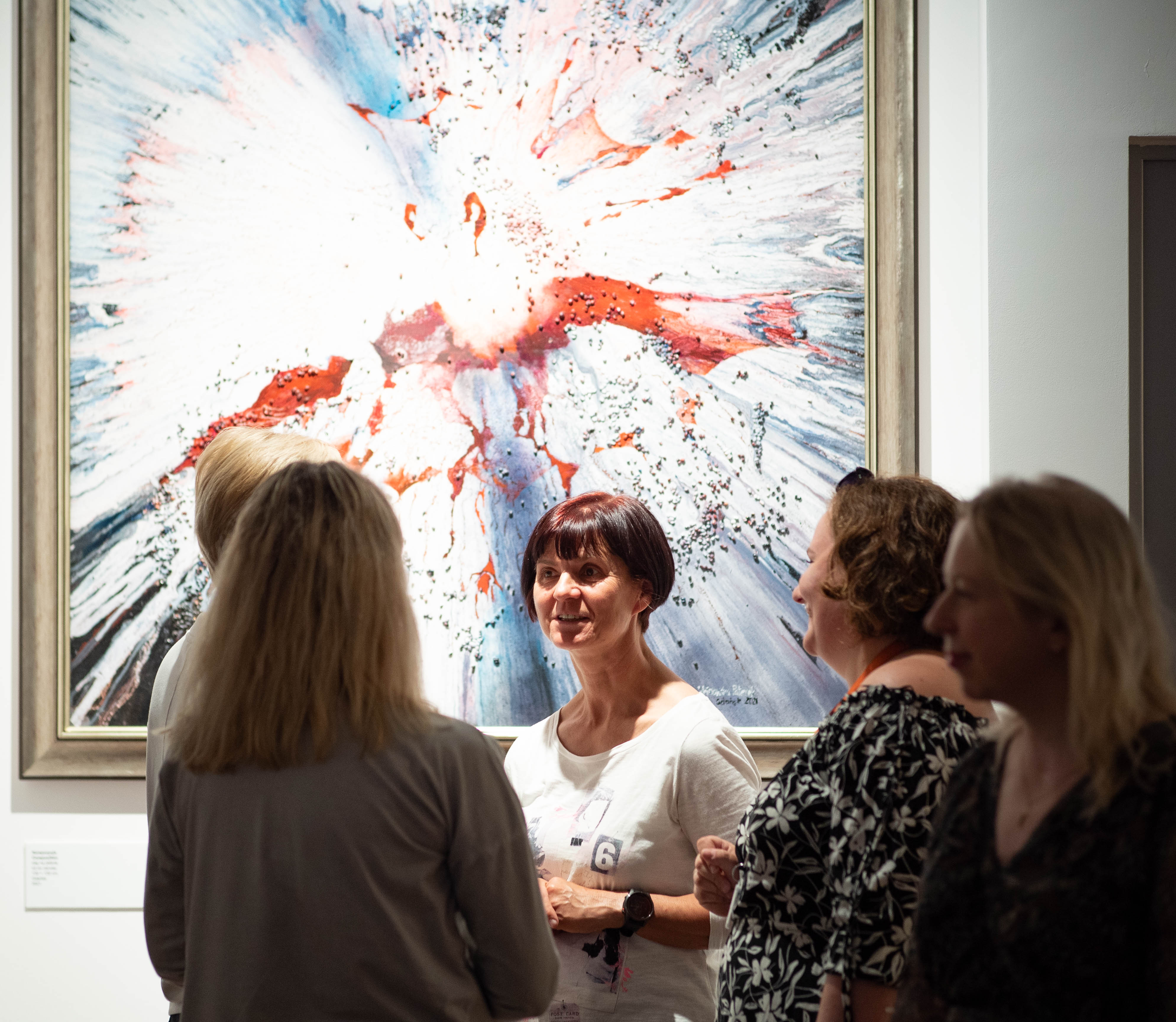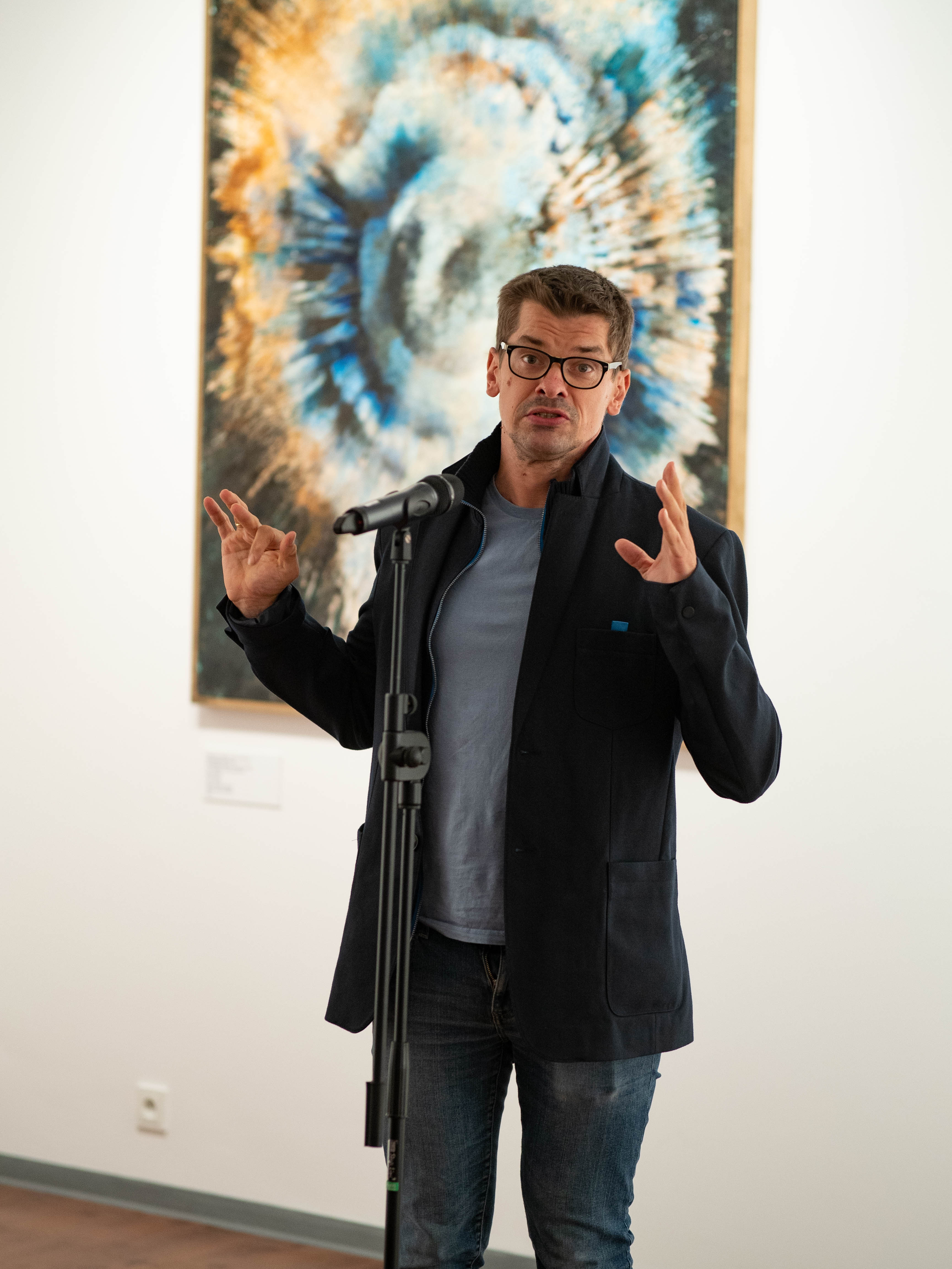 – Imagine that there was a stage in the universe where everything looked like the tiny fragments immortalised in the paintings, said dr hab. Marcin Wieśniak, prof. UG, author of the exhibition catalogue. – The entire young universe was filled with a cloud of hydrogen. Only then were the first stars born. This process took at least 150 million years.