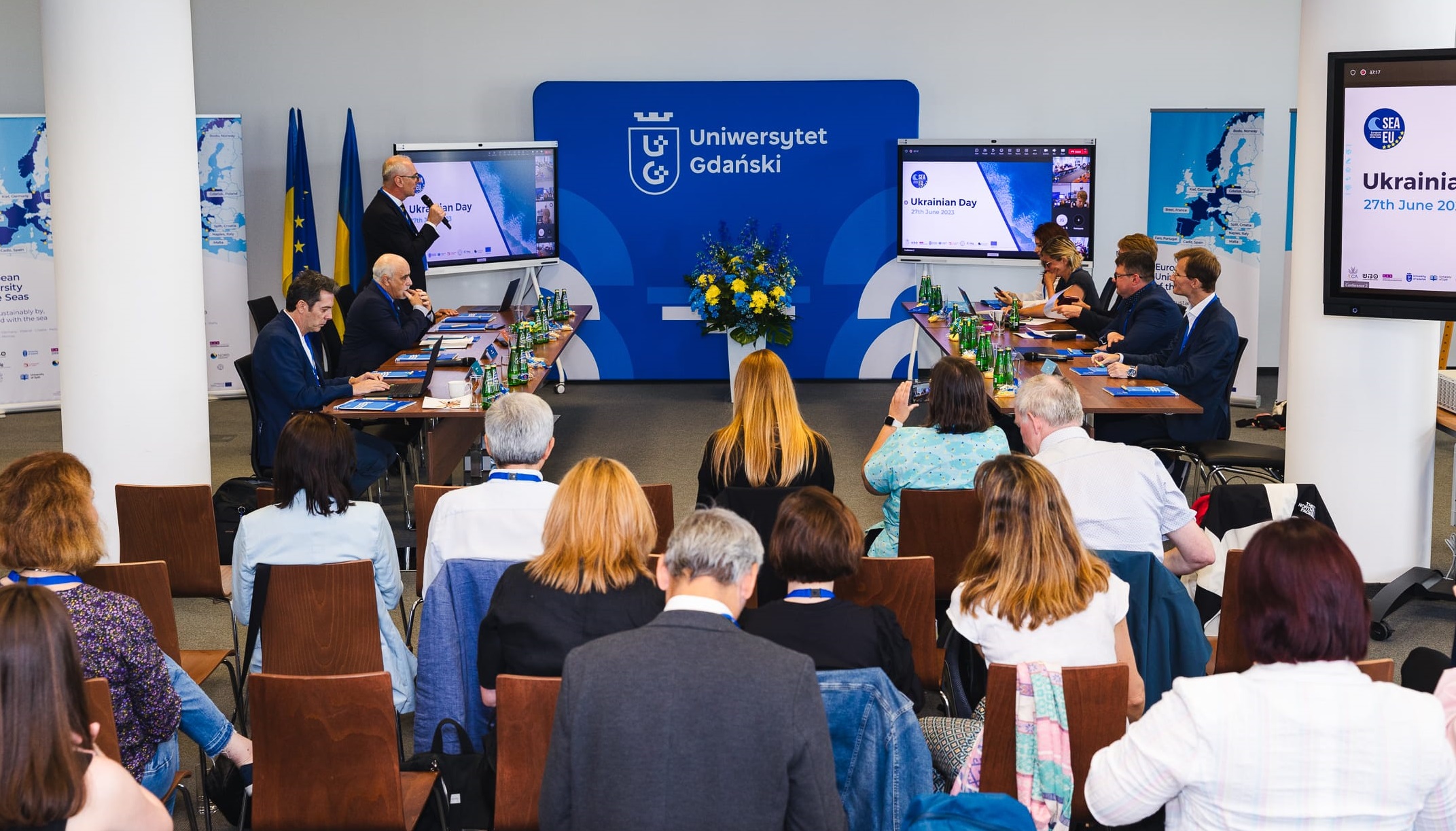 Next on the agenda was the Ukrainian Day in the Library of the Univerity of Gdańsk’s Welcome Centre. It was attended by the representatives of the Odesa I. I. Mechnikov National University, who presented the potential of their institutions to the members of the SEA-EU alliance. The guests were welcomed by dr hab. Arnold Kłonczyński, a professor of the University of Gdańsk and the Vice-Rector for Student Affairs and Education Quality, the chairman of the meeting: - We want to welcome in Gdańsk both those who are with us in the Library of the University of Gdańsk building and those joining us online. I am convinced it will be great time, facilitating debates and conversations about future plans.