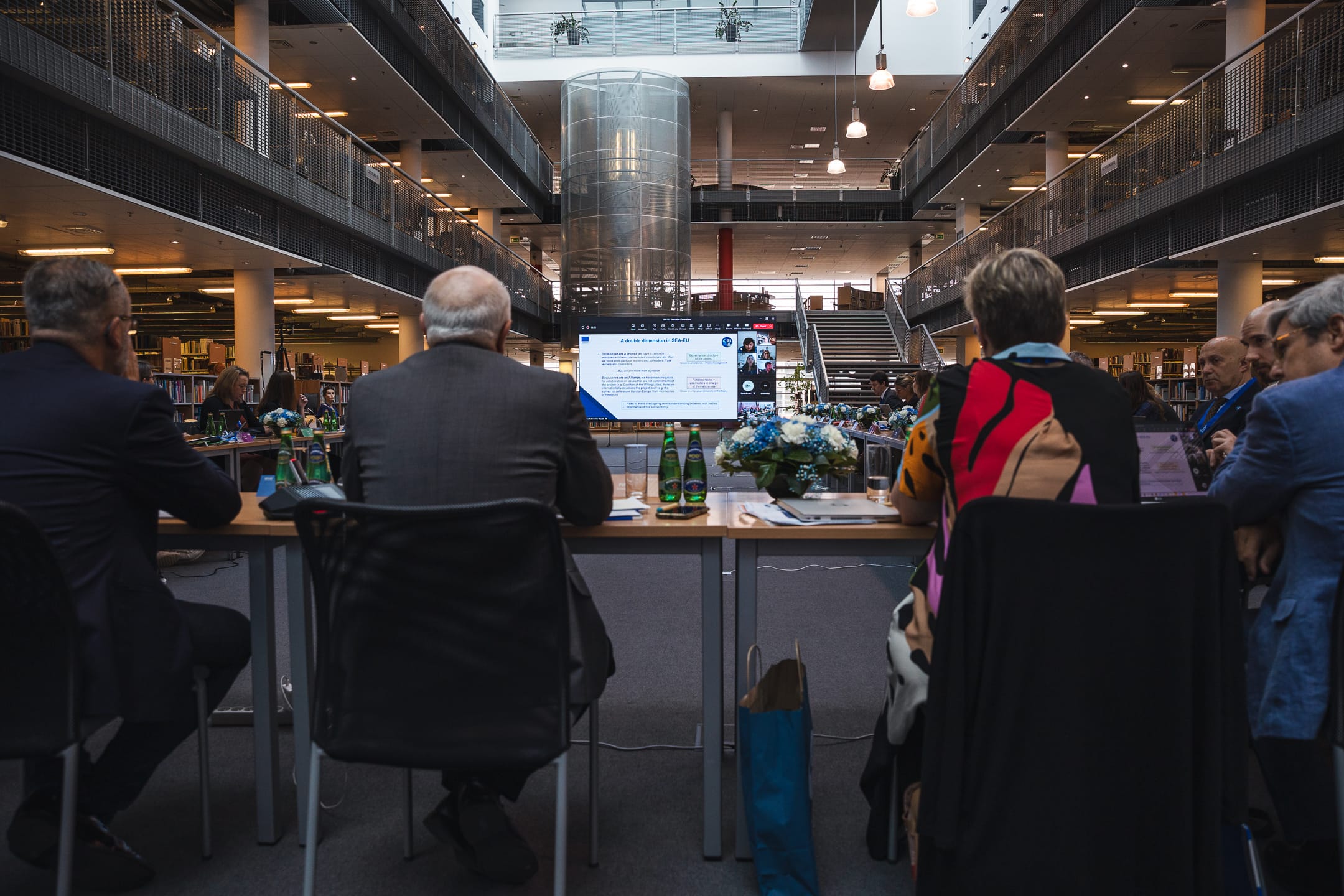 After the lunch break, further meetings of Governing Week planned for today will take place in the Library of the University of Gdańsk, including Student Council, Cities Council, Ports Council, SEA-EU Goes Greener, and Open Campus Lectures about SDGs.