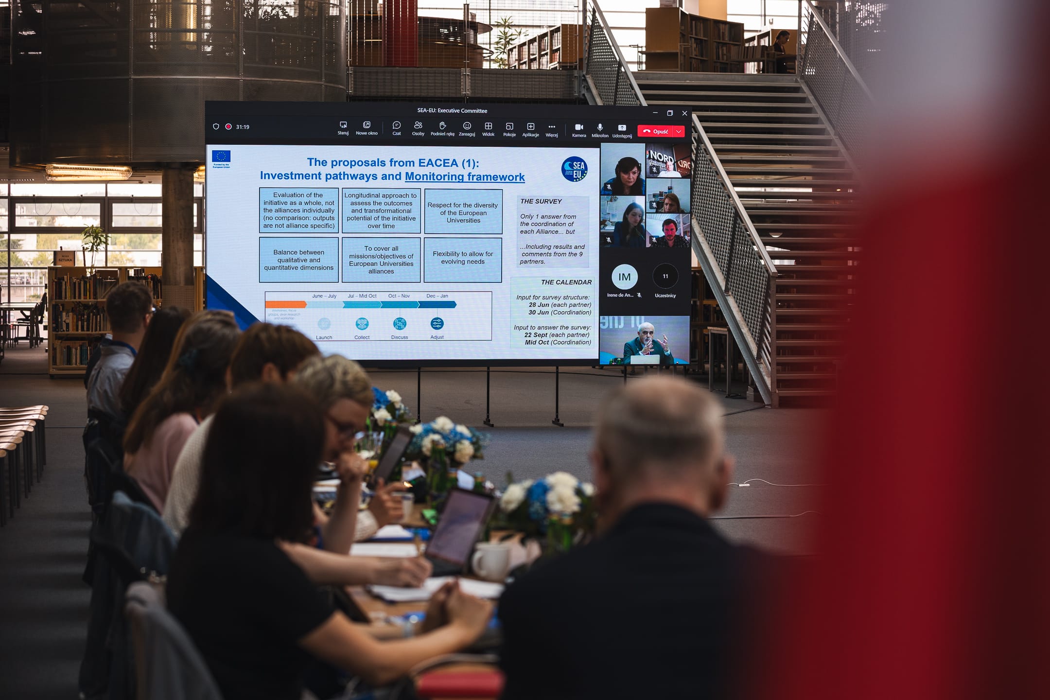 The second panel, the Meeting of the Executive Committee of the SEA-EU Alliance, started at 12:15 p.m. and was opened by welcoming the participants and approving the minutes from the last plenary session of EC. After that, actions taken within reSEArch-EU between February 2023 and June 2023 were discussed.