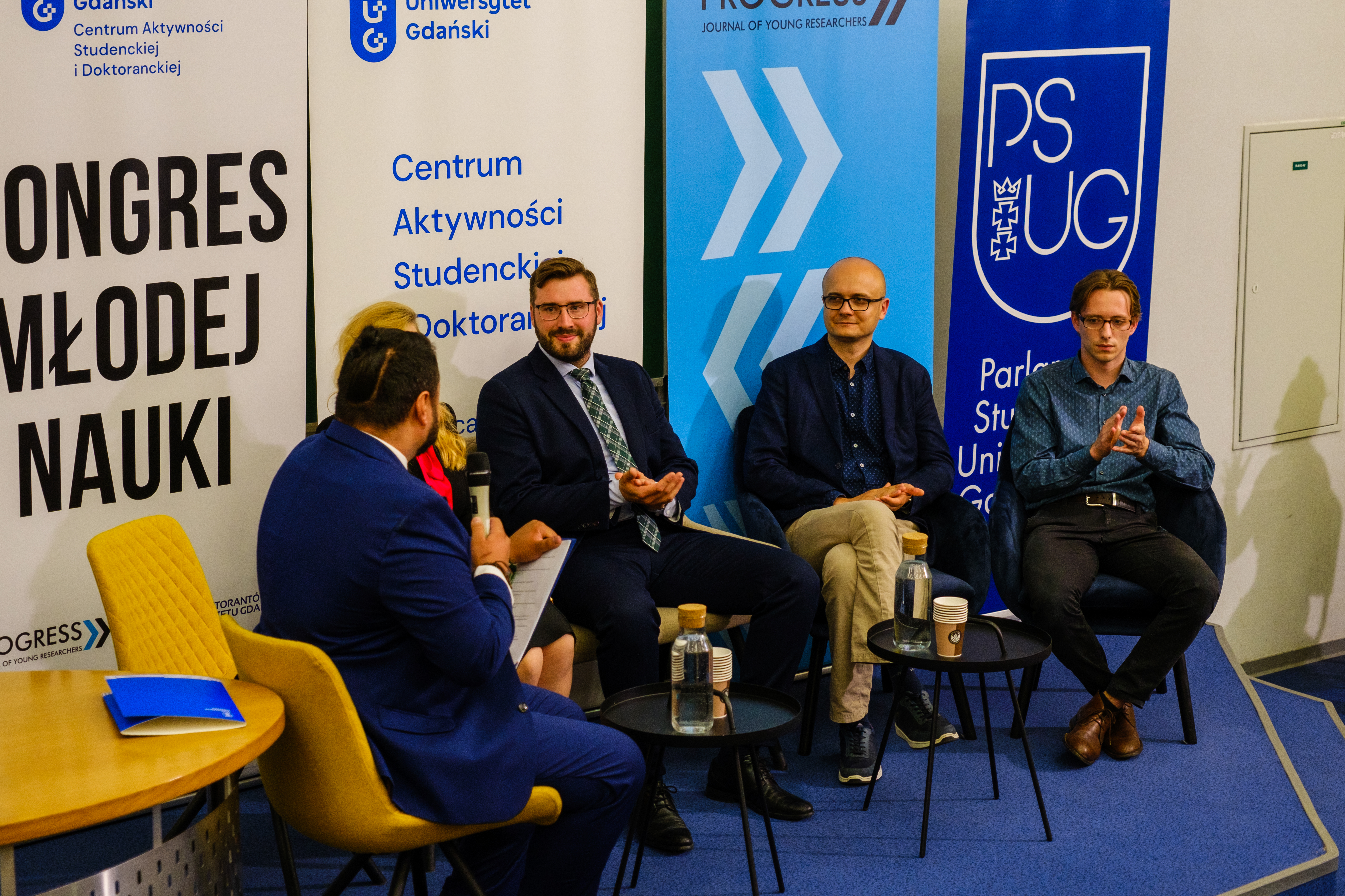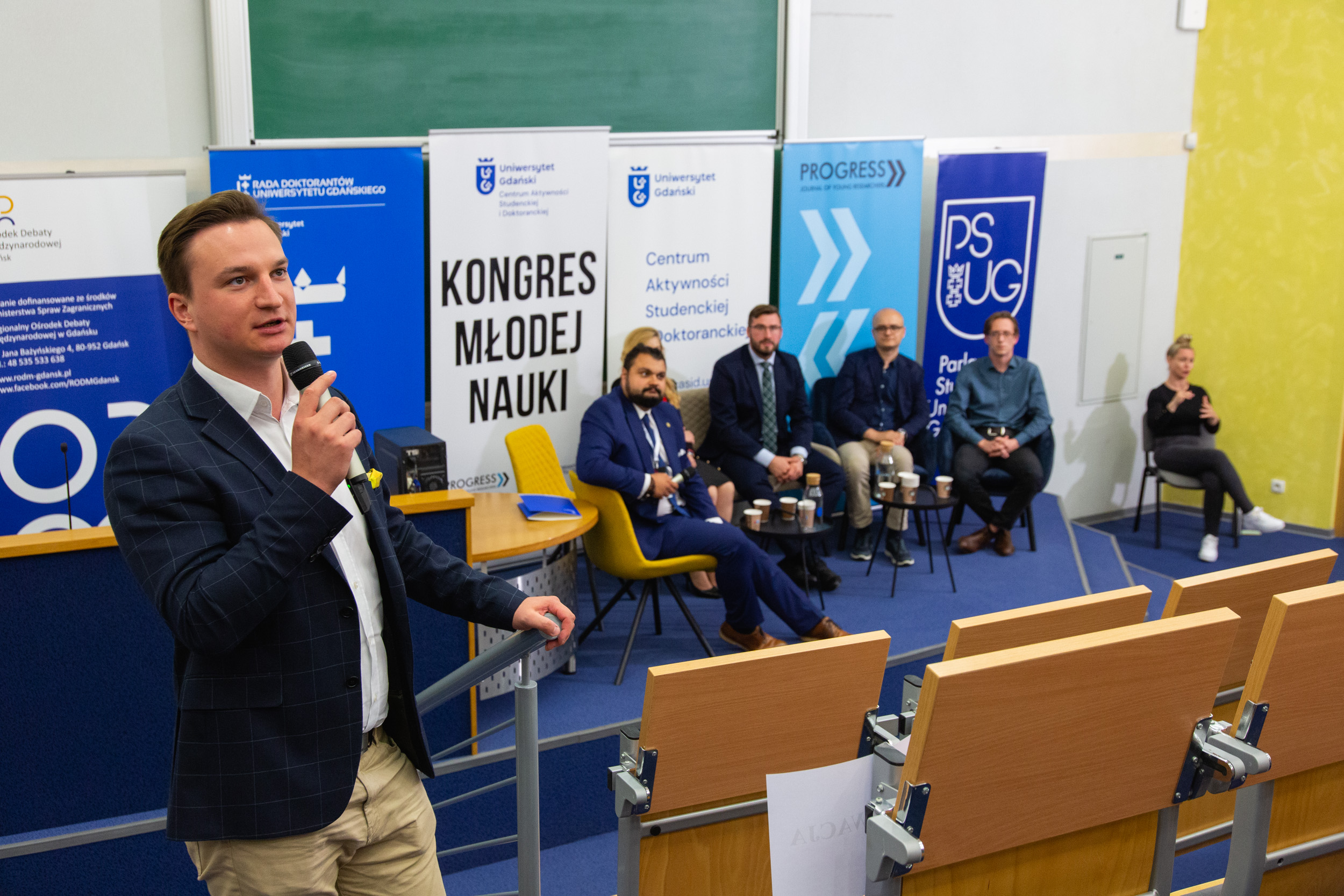The first plenary session, chaired by Sebastian Barczak, President of the UG Doctoral Council, was attended by doctoral students and a young doctor, who talked about the challenges in their scientific careers, as well as the opportunities and obstacles on their path.