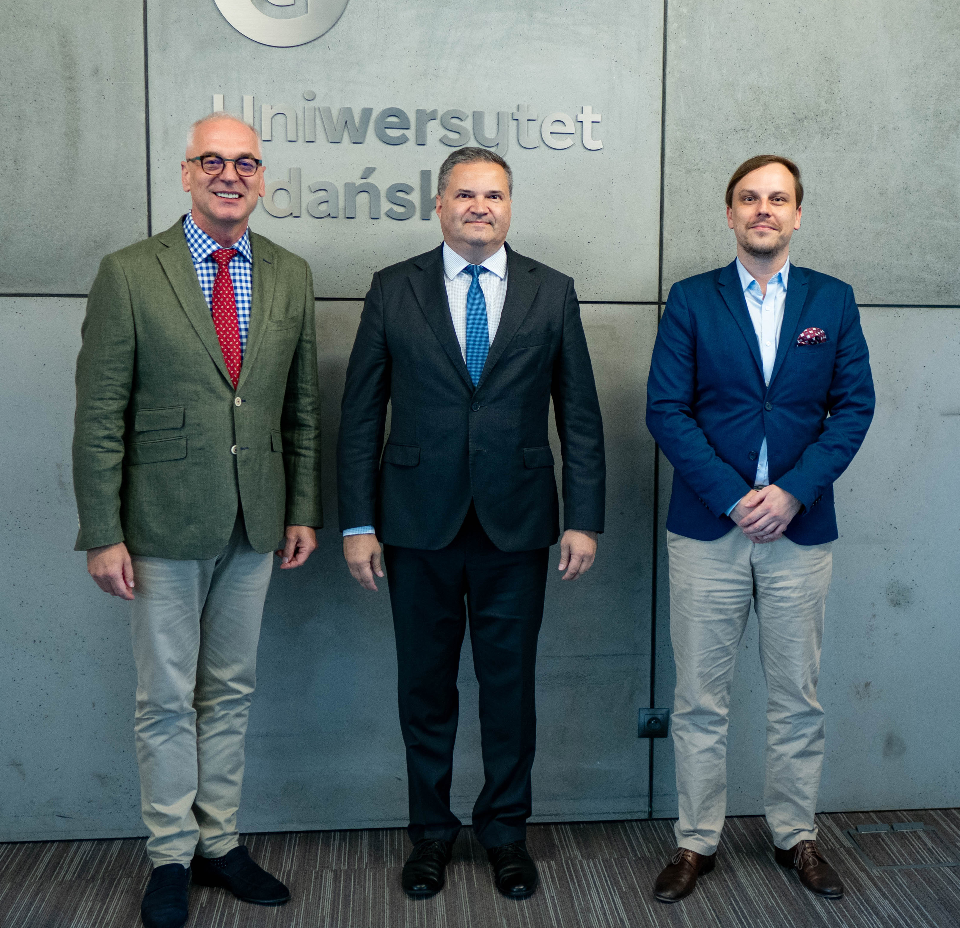 The cooperation was initiated by the Centre for Courses and Training UG, which is expanding its activities by acquiring new partners. President of the Gdańsk District Pharmaceutical Chamber, mgr. pharm. Michał Pietrzykowski, Vice-Rector for Students and Quality of Education at the University of Gdańsk, dr hab. Arnold Kłonczyński, prof. UG, and Director of the Centre for Courses and Training UG, dr Piotr Zieliński, participated in the formal signing of the agreement.