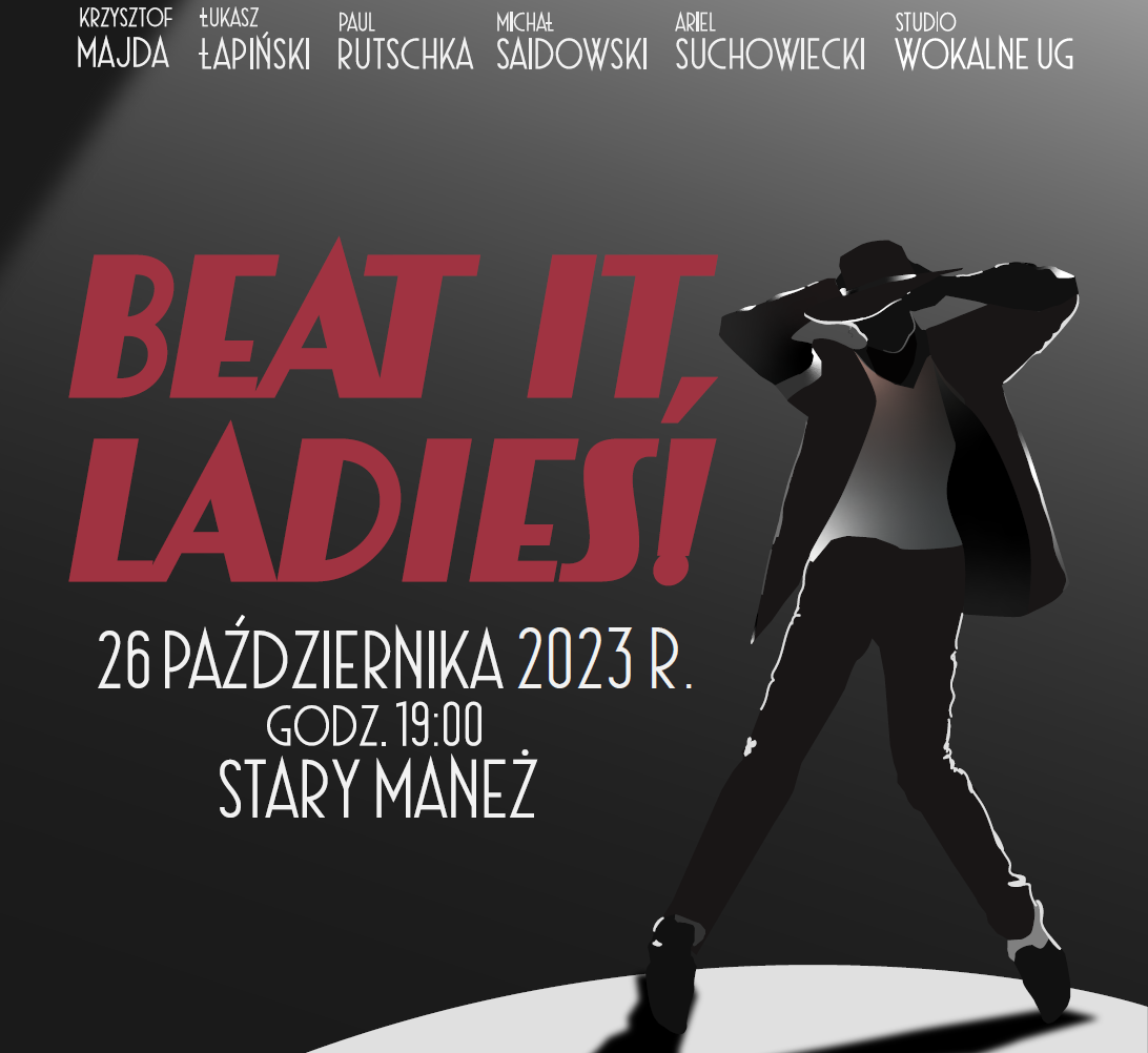 The UG Vocal Studio invites you to the Stary Maneż for a great time with Michael Jackson's immortal hits, which will resound anew in a female version. The soloists and vocal group will be accompanied by an excellent band of acclaimed musicians from Tricity.